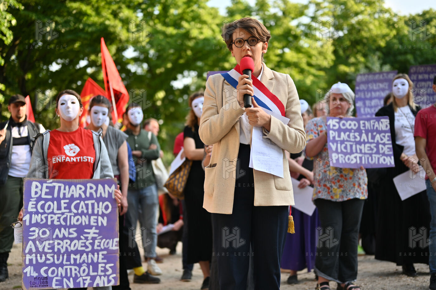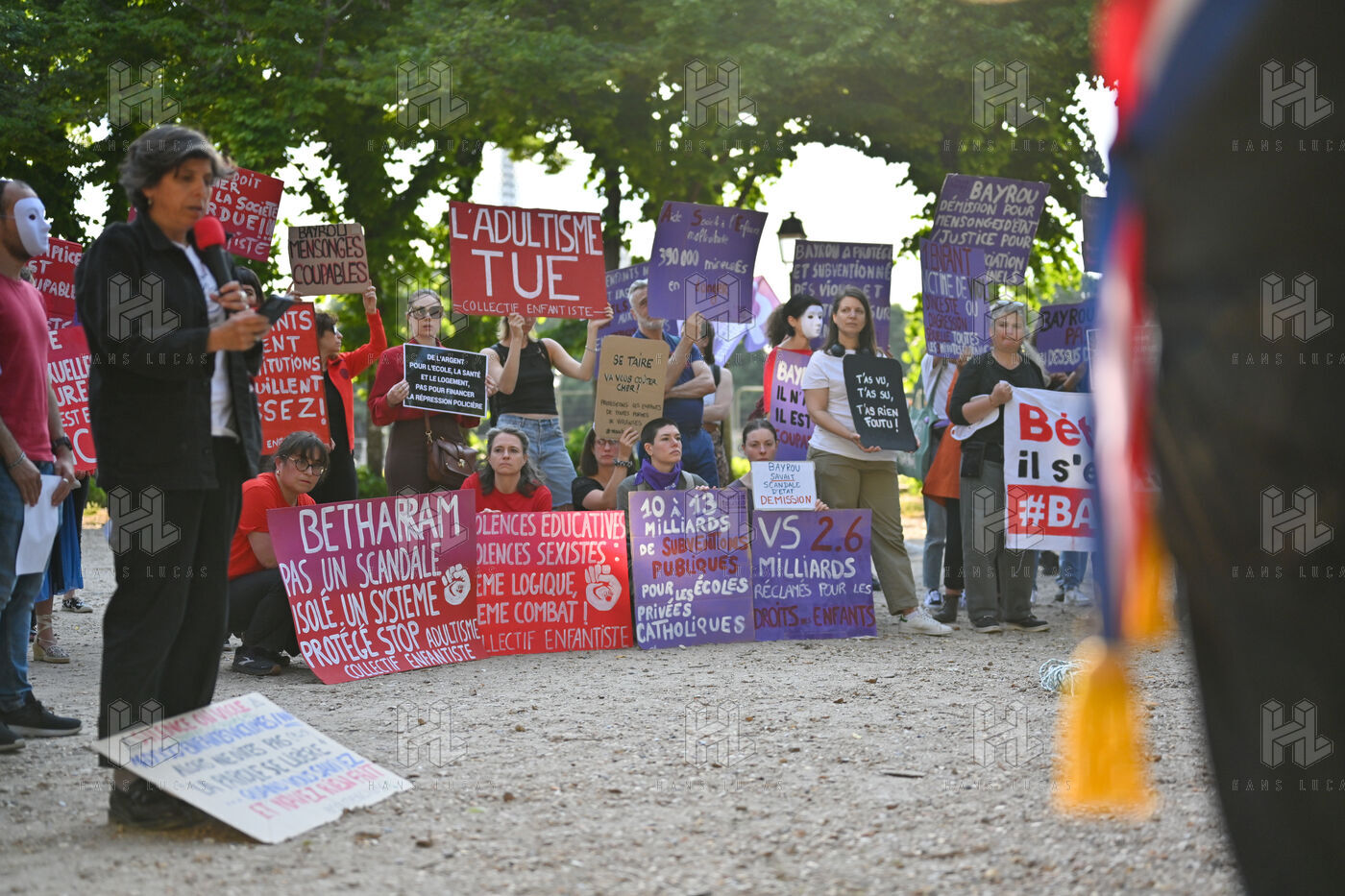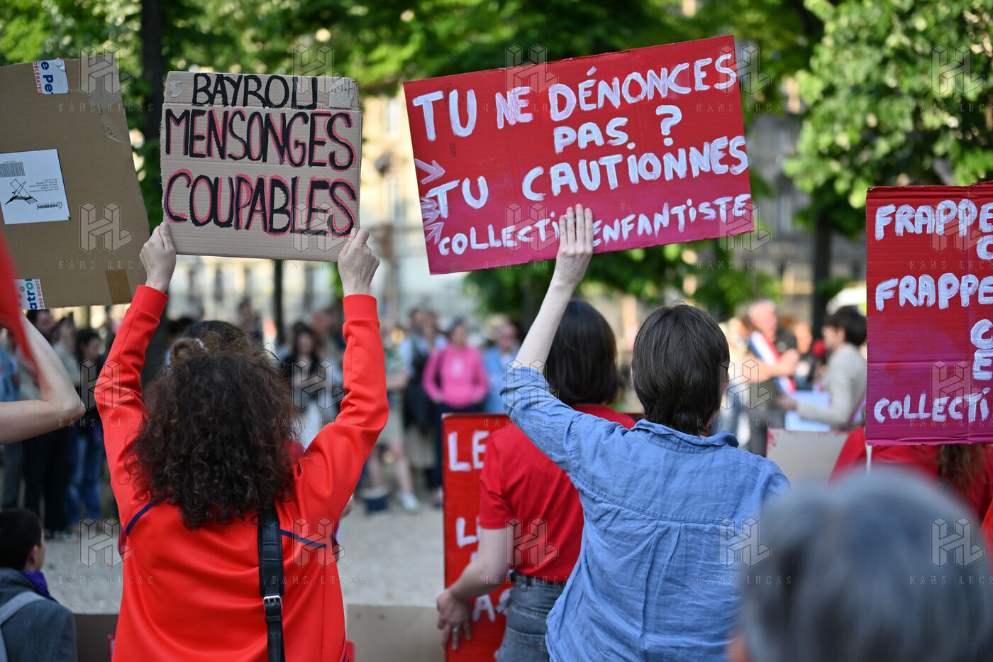 The Enfantiste collective gathered with other associations outside the National Assembly during the hearing of François Bayrou by the parliamentary commission of inquiry tasked with evaluating the State's oversight of violence in schools. Protesters denounced the authorities' inaction in response to violence against children, particularly in the Betharram institution, and called for the Prime Minister’s resignation, arguing that he could not have been unaware of these repeated incidents. They also demanded the implementation of the recommendations issued by the Ciivise to better protect children in both public and private educational institutions, as well as in care facilities and families. Several collectives, including NousToutes, Enfantiste, and Révolution Féministe Versailles, took part in organizing this protest.