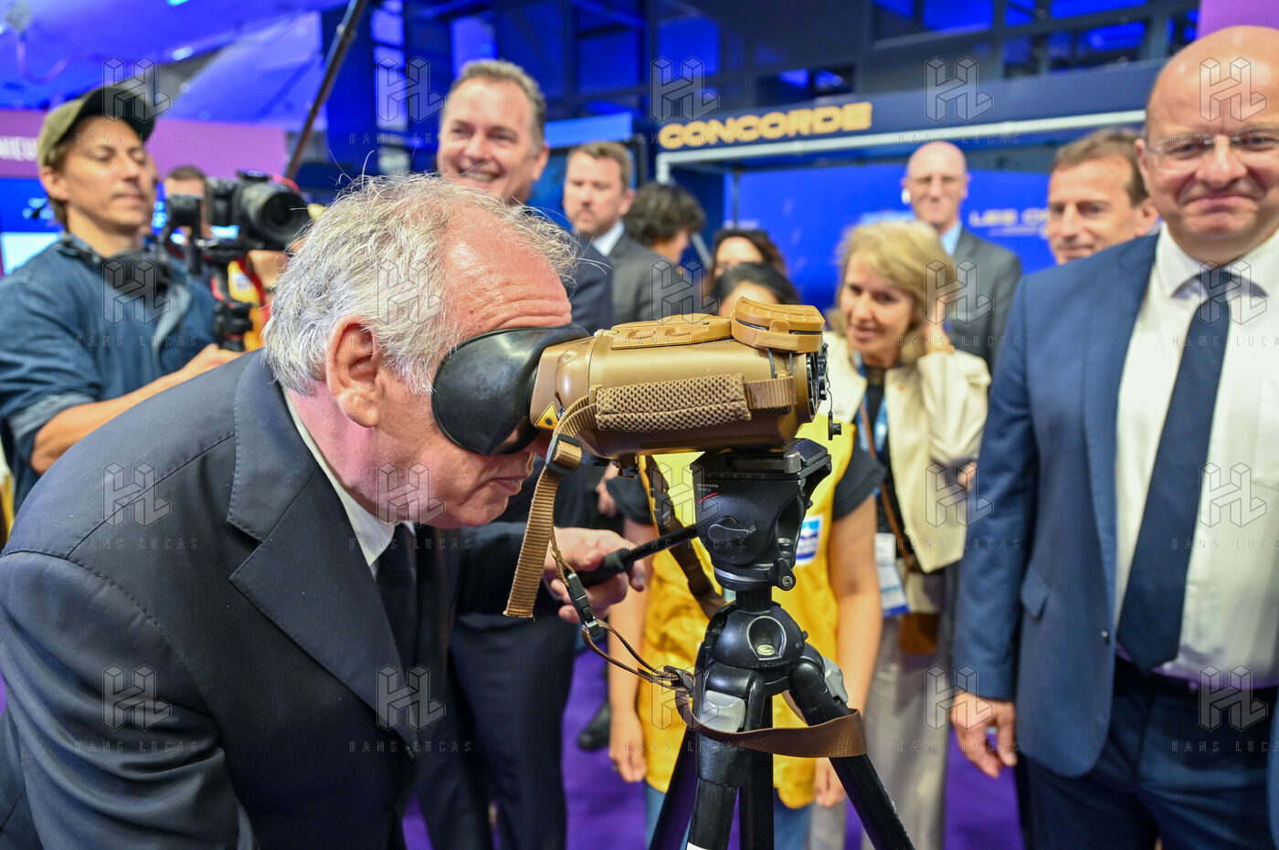 Le Premier ministre, François Bayrou en visite au Salon international de l aeronautique et de l espace au Bourget (SIAE).