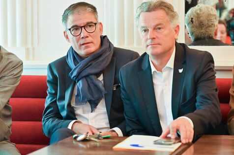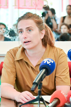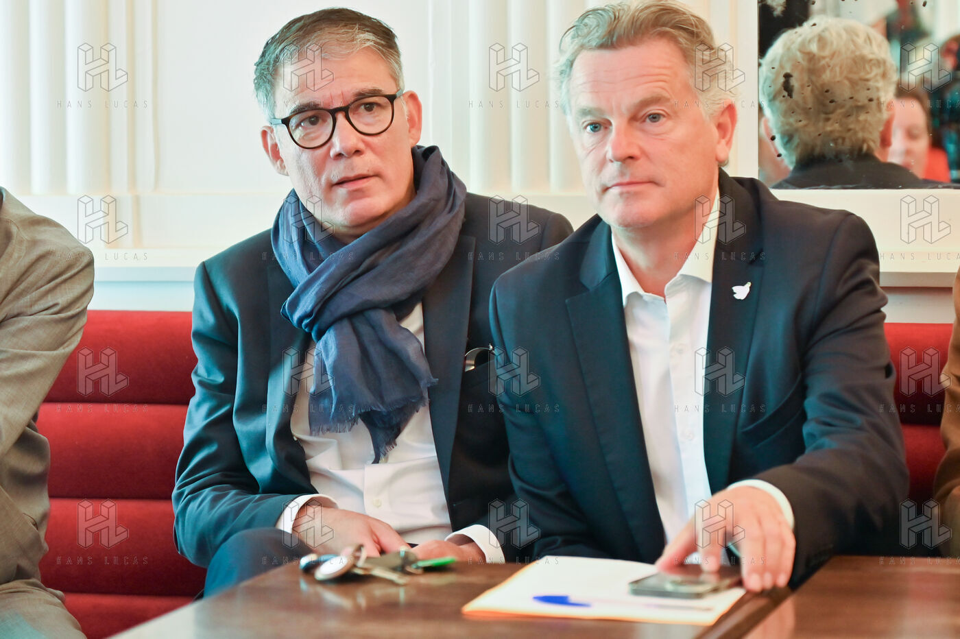 Conférence de presse pour la reconnaissance de l’Etat de Palestine au café Concorde en présence notamment de Marine Tondelier, Olivier Faure et Fabien Roussel.