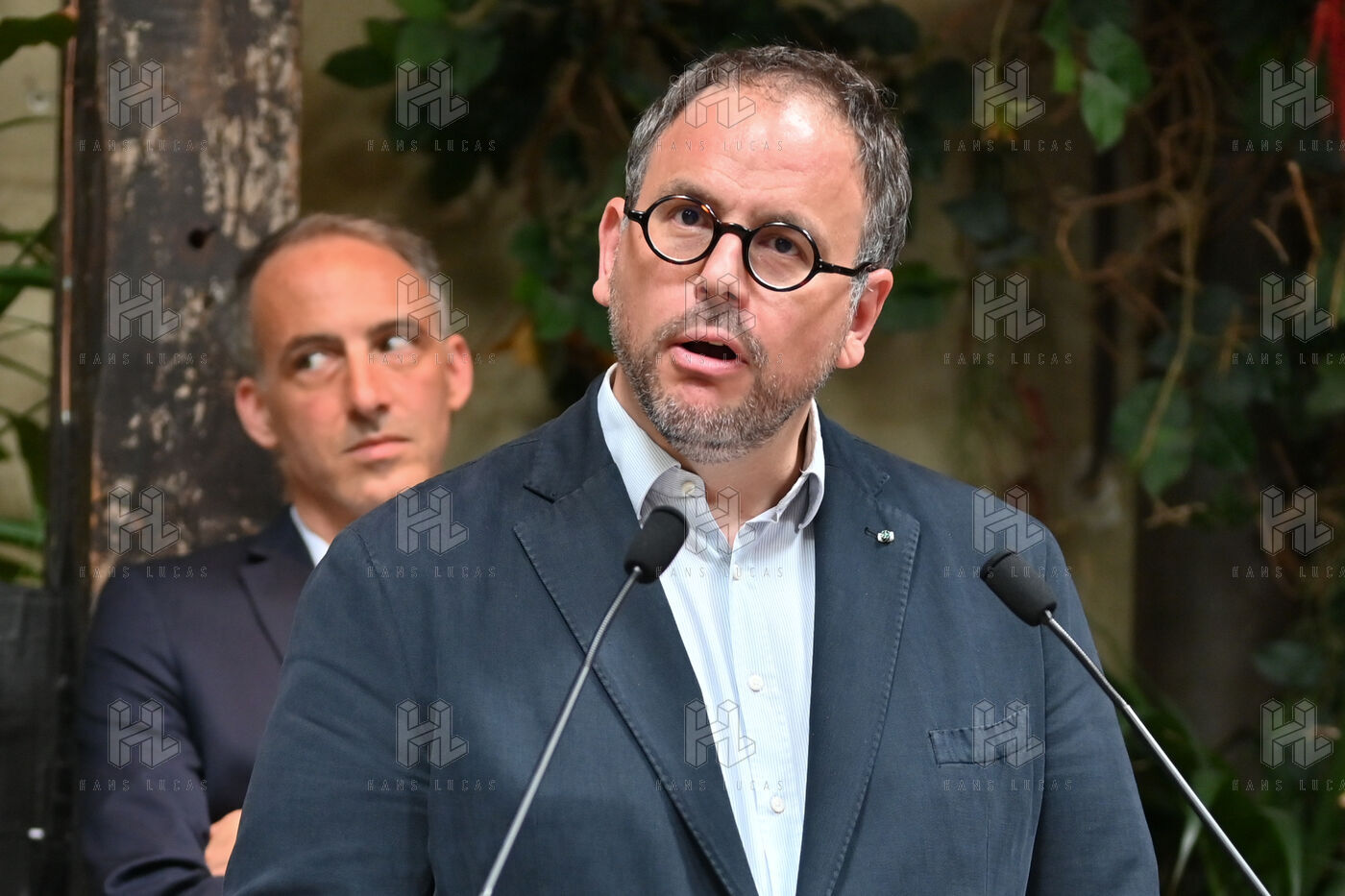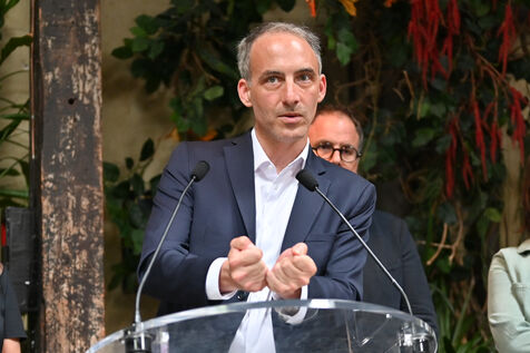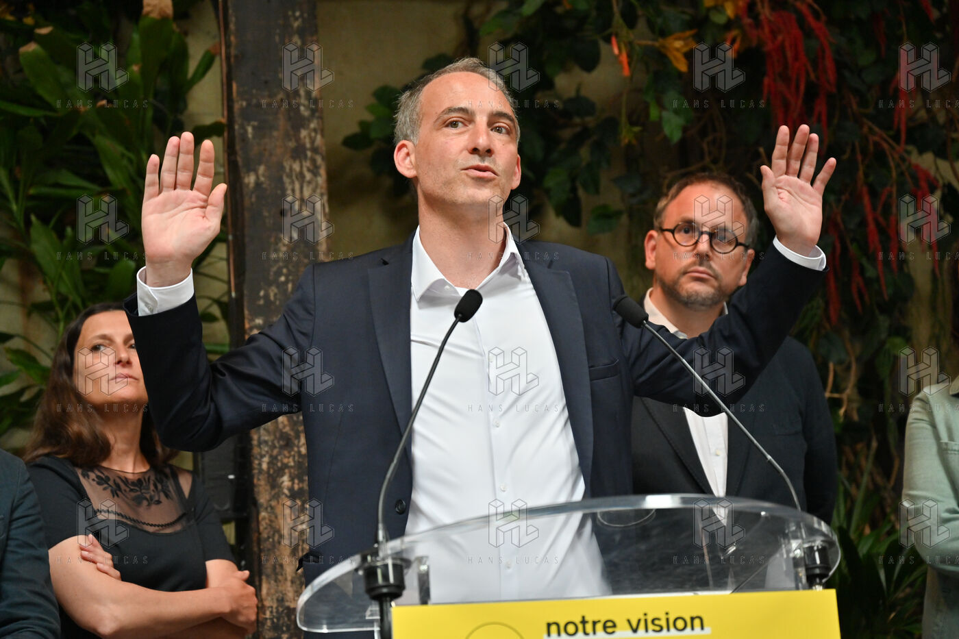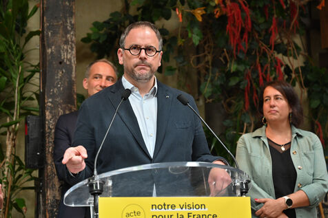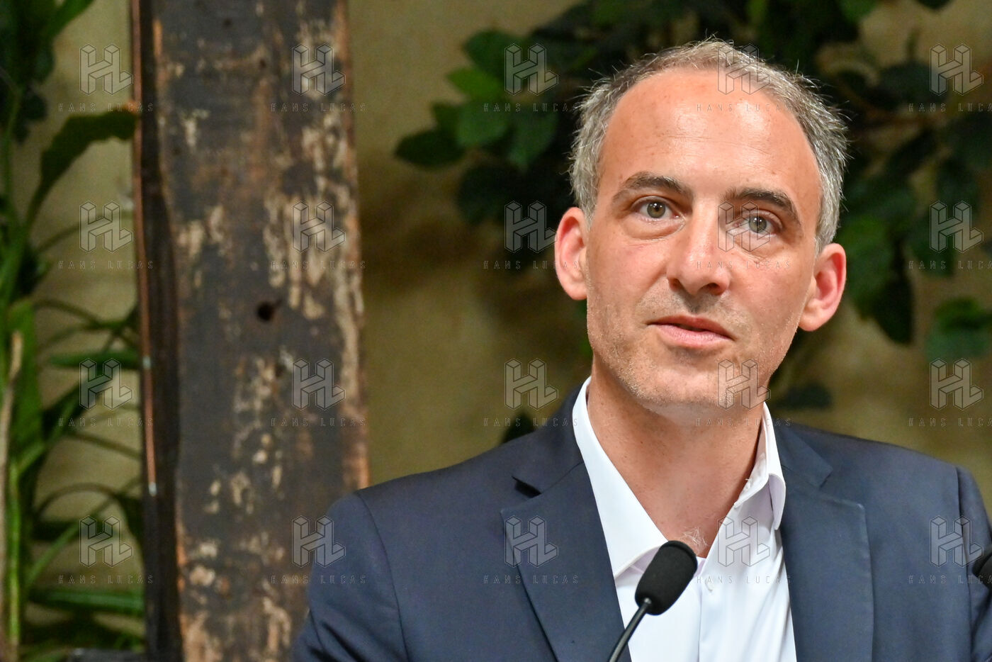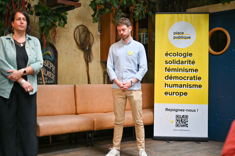 Raphael Glucksmann presents the program of his party Place publique during a press conference held at the Comptoir general.
