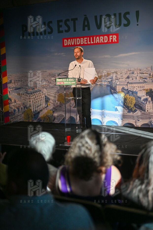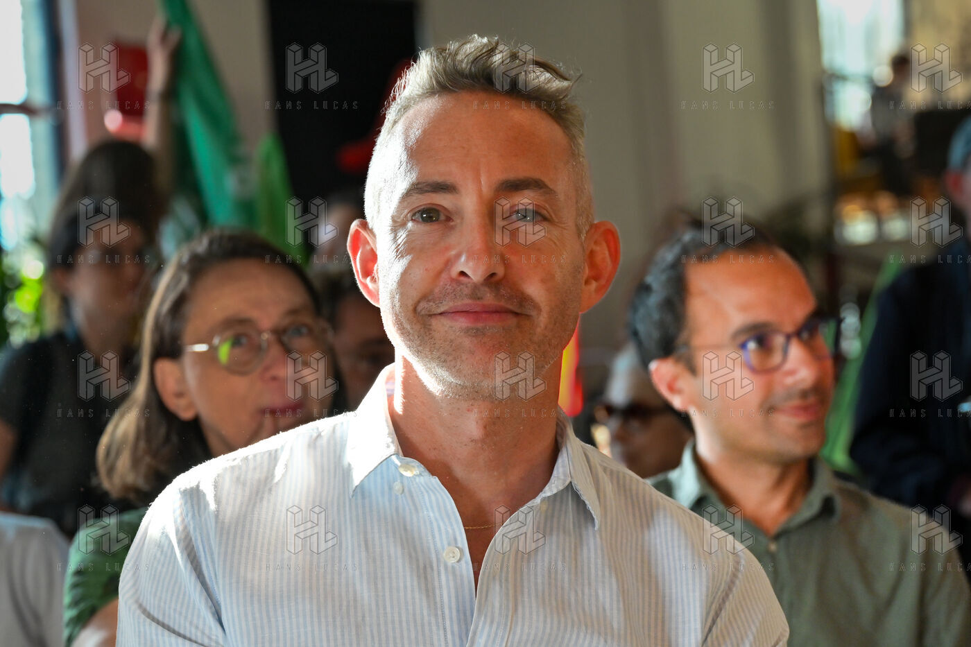David Belliard, candidate of the ecologists, holds his first campaign meeting for the 2026 municipal elections at la Bellevilloise in Paris.