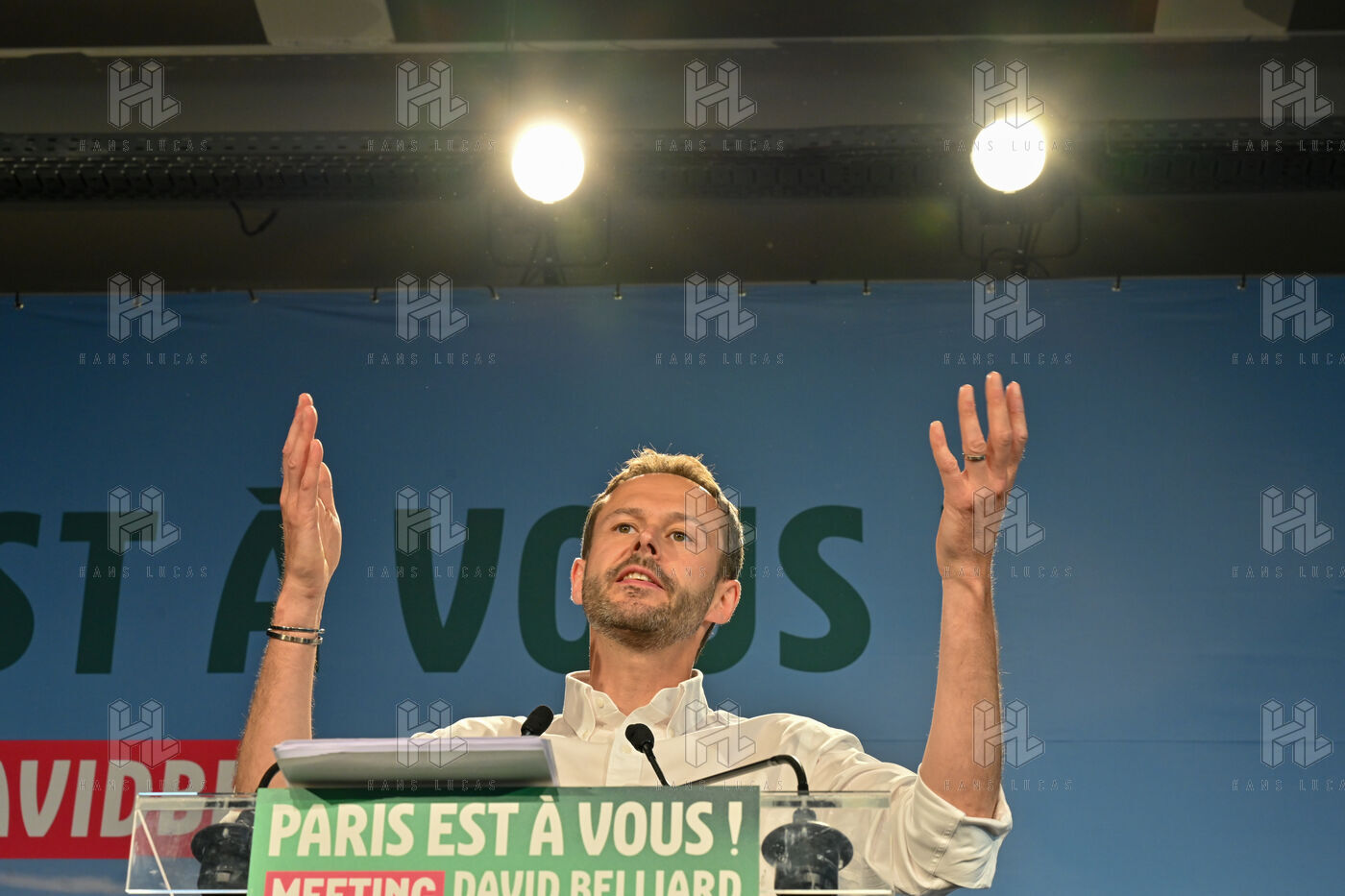 David Belliard, candidat des Écologistes, donne son premier meeting de campagne pour les municipales 2026 à la Bellevilloise.
