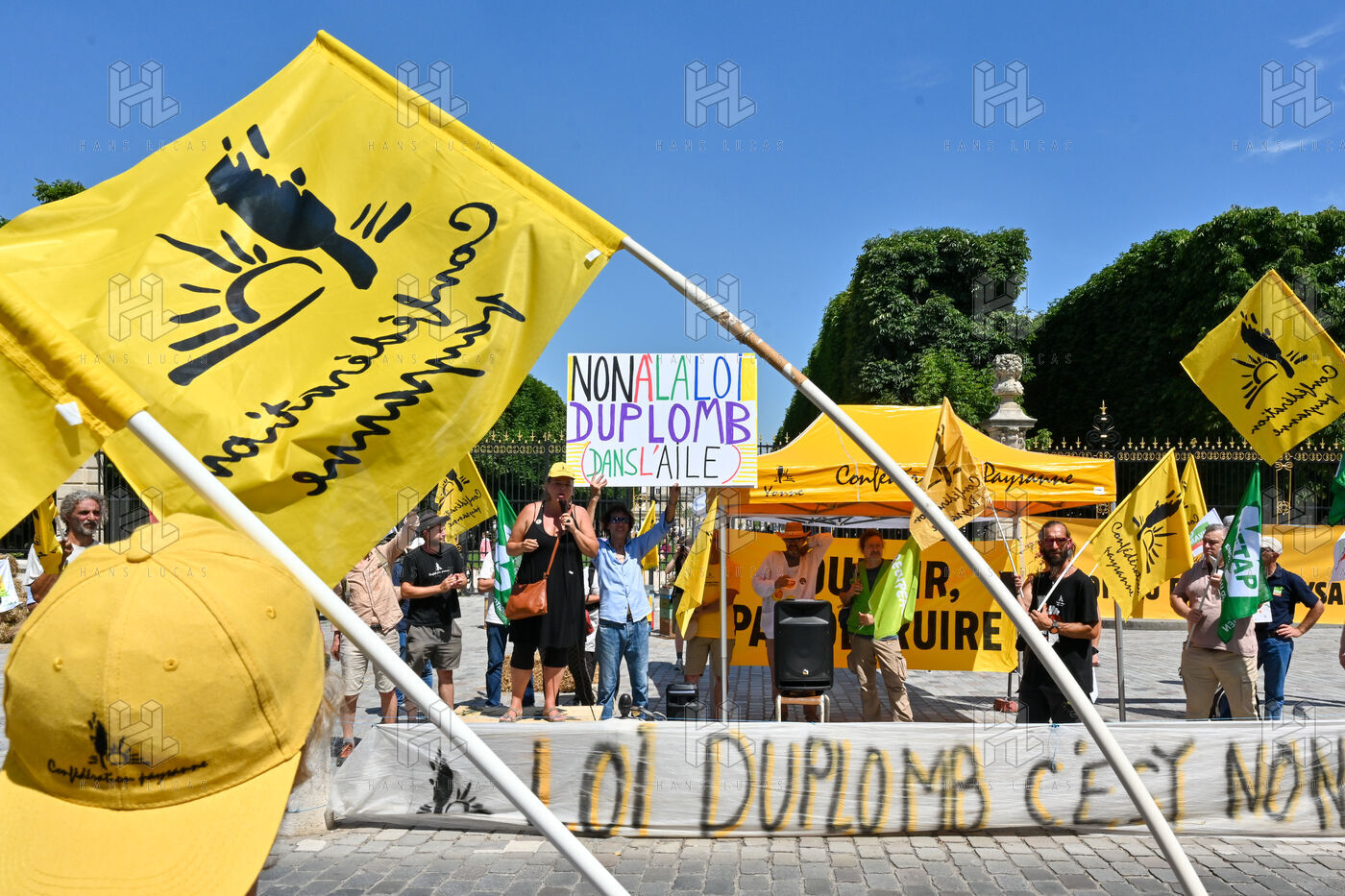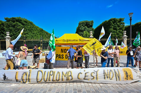 In Paris on Monday June 30, health and environmental activists gathered in front of the Senate to protest against the Duplomb law currently under review by the upper chamber. The 24-hour mobilization denounces a bill deemed dangerous for public health and biodiversity. Protesters accuse the government of sacrificing the precautionary principle and facilitating the use of potentially carcinogenic pesticides. Banners, speeches, and calls to change the agricultural model marked the action. Several organizations such as Foodwatch, the Confederation paysanne, and Extinction Rebellion were present.