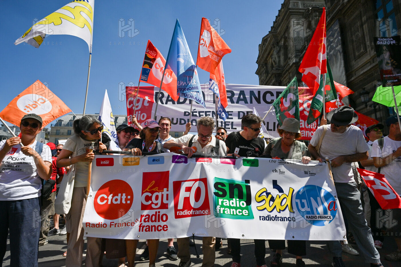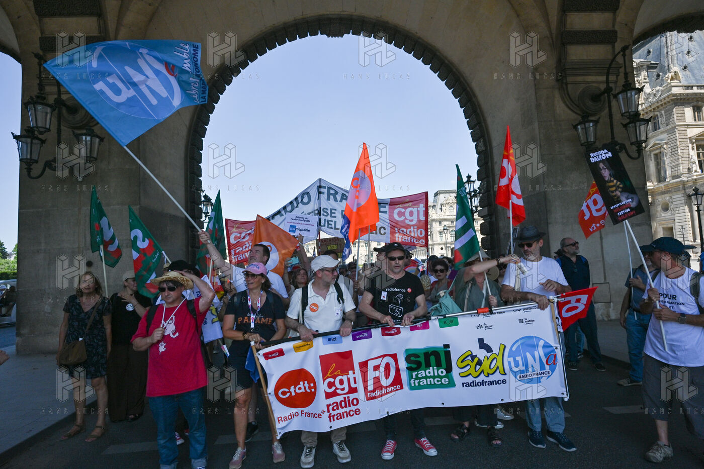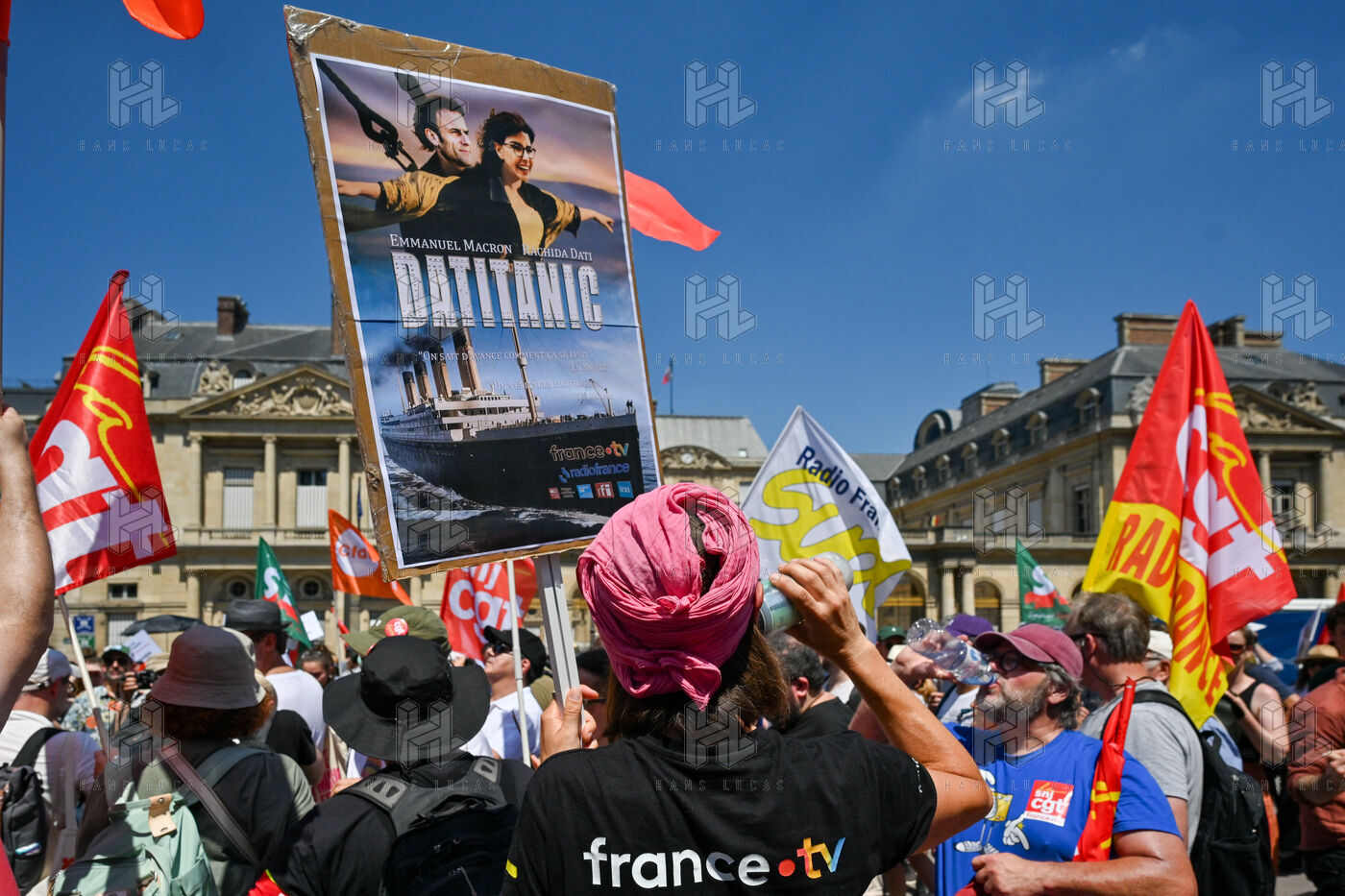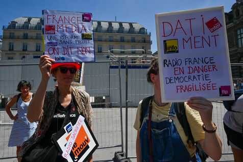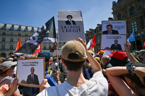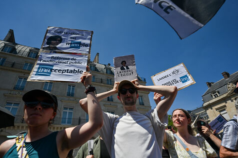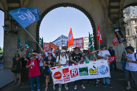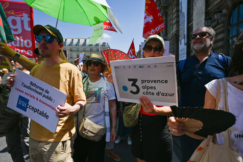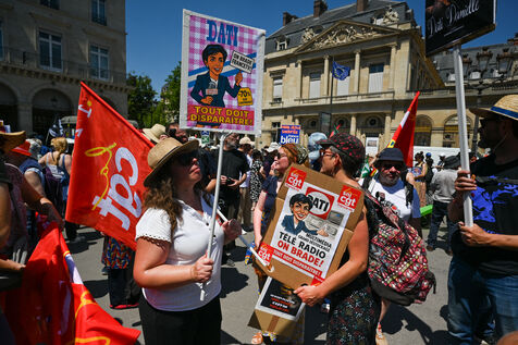 On Monday June 30, striking employees of Radio France France Televisions INA and France Medias Monde demonstrate against the public broadcasting reform proposed by minister Rachida Dati. Seven deputies and seven senators meet behind closed doors in a joint parliamentary committee to decide on the Duplomb bill, rejected without examination in the Assembly and supported by the right the far right and the FNSEA.