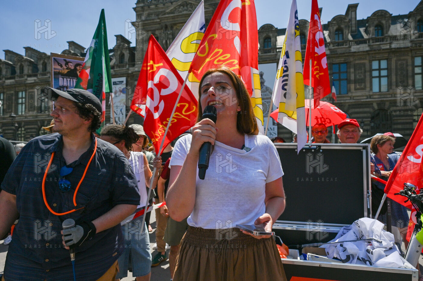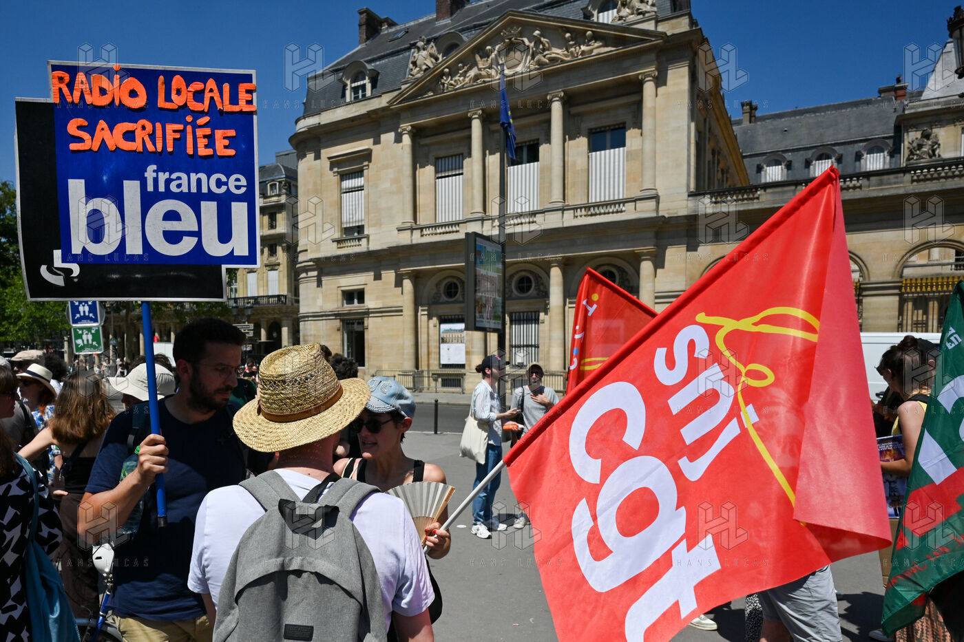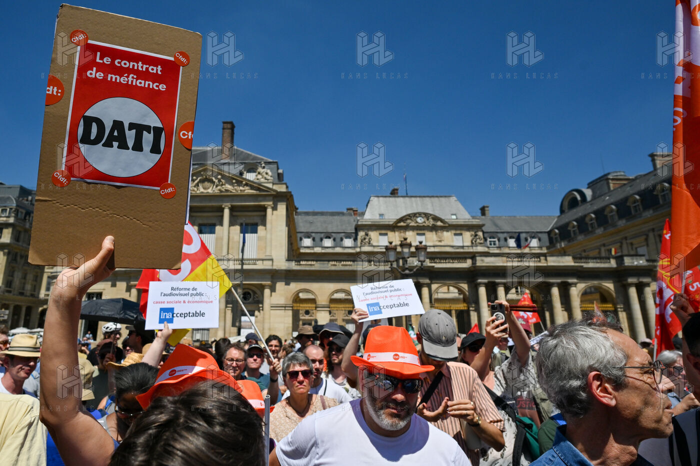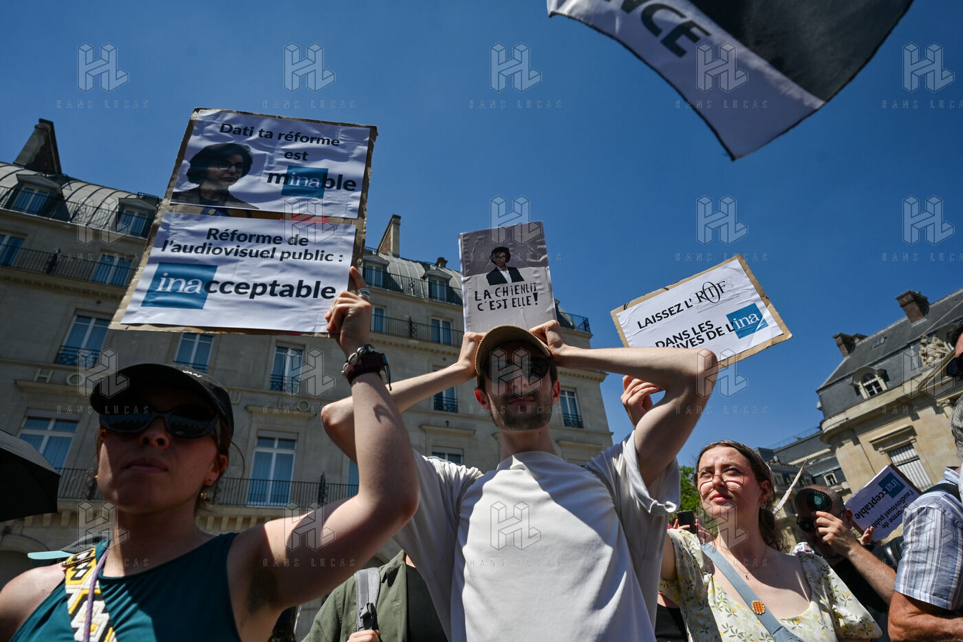 On Monday June 30, striking employees of Radio France France Televisions INA and France Medias Monde demonstrate against the public broadcasting reform proposed by minister Rachida Dati. Seven deputies and seven senators meet behind closed doors in a joint parliamentary committee to decide on the Duplomb bill, rejected without examination in the Assembly and supported by the right the far right and the FNSEA.