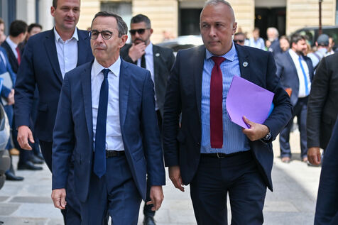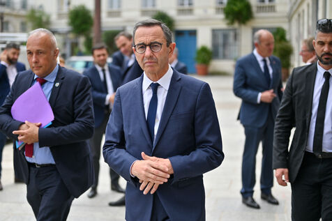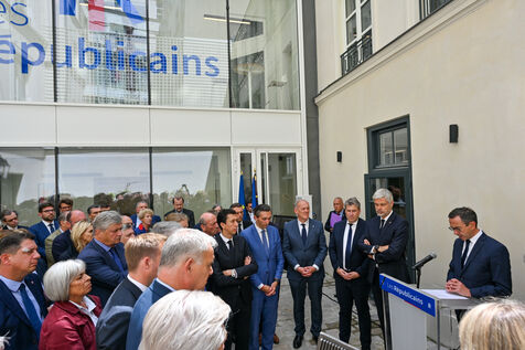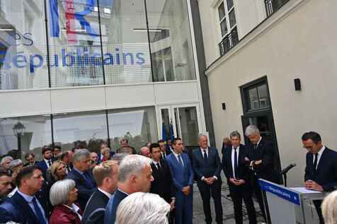 Bruno Retailleau and members of Les Republicains pay tribute to Olivier Marleix at the party's headquarters.
