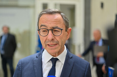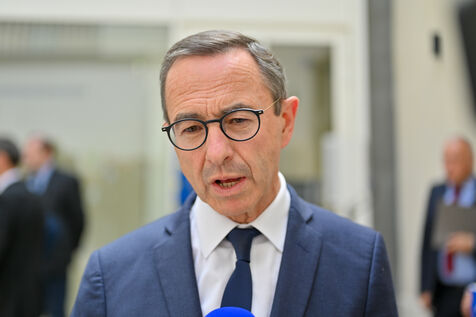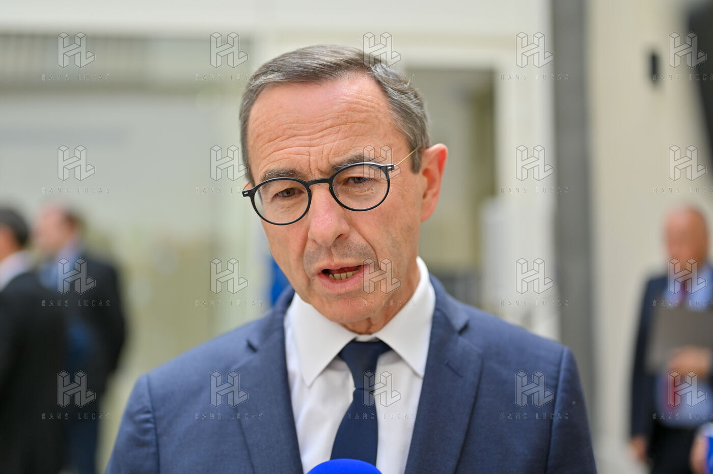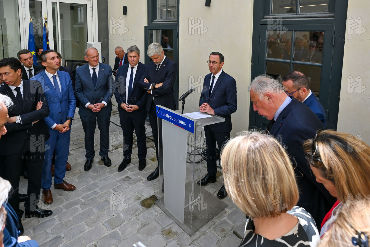 Bruno Retailleau et des membres des Républicains rendent hommage à Olivier Marleix au siege du parti LR.