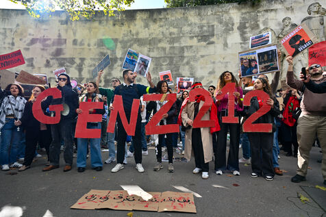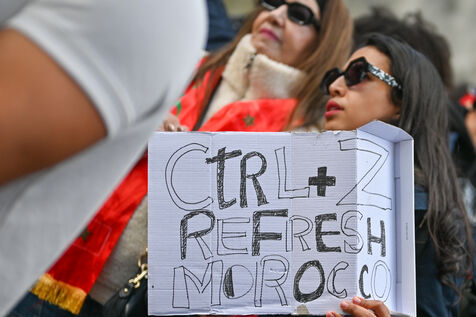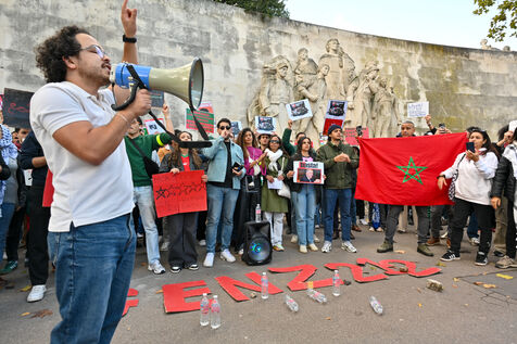 Young Moroccans from the diaspora, members of the GenZ 212 collective, gather at Place du Trocadéro in Paris to show solidarity with protesters in Morocco and demand better health and education services.
