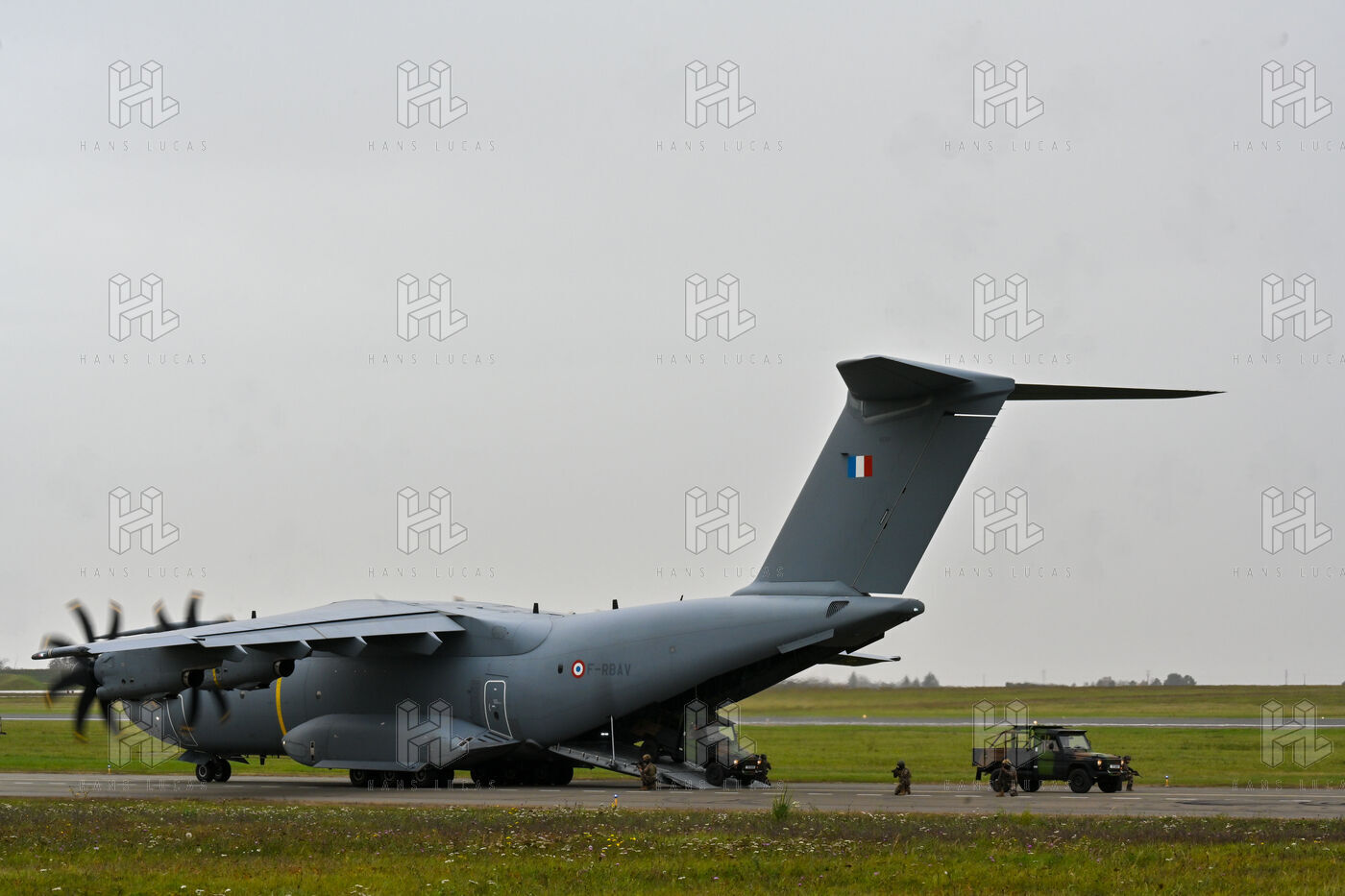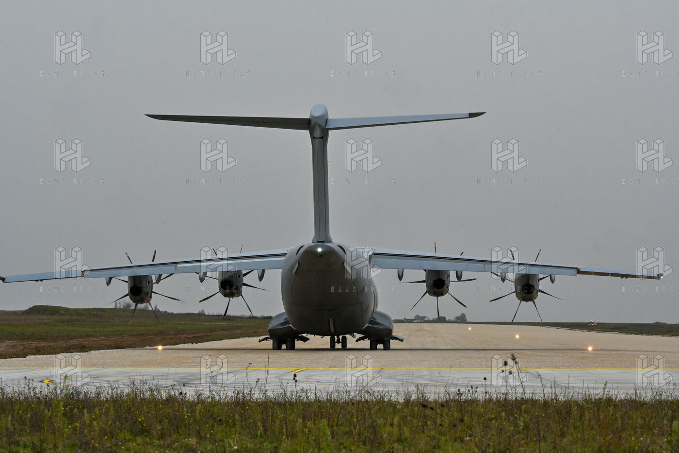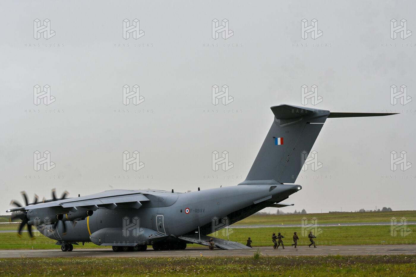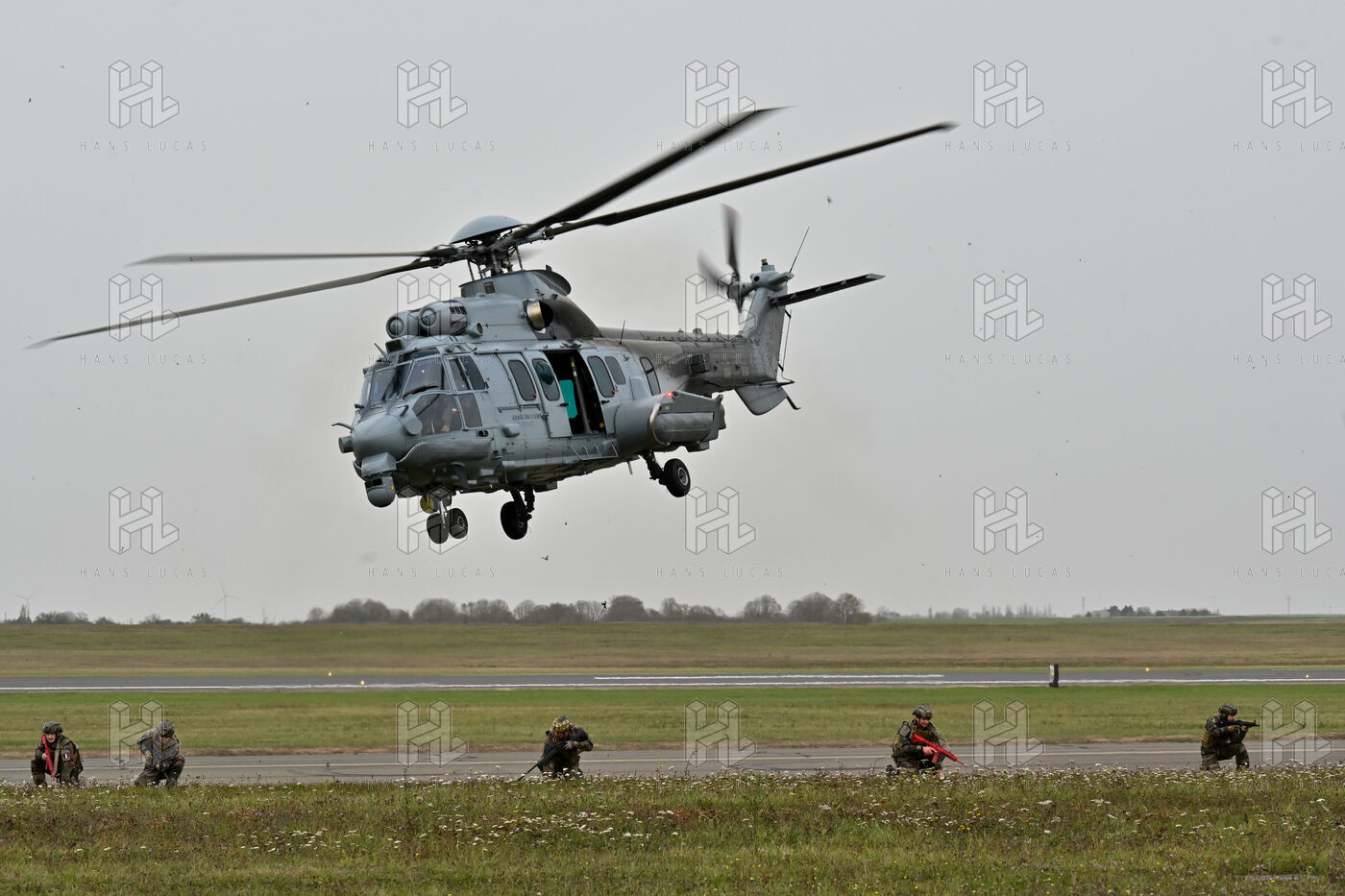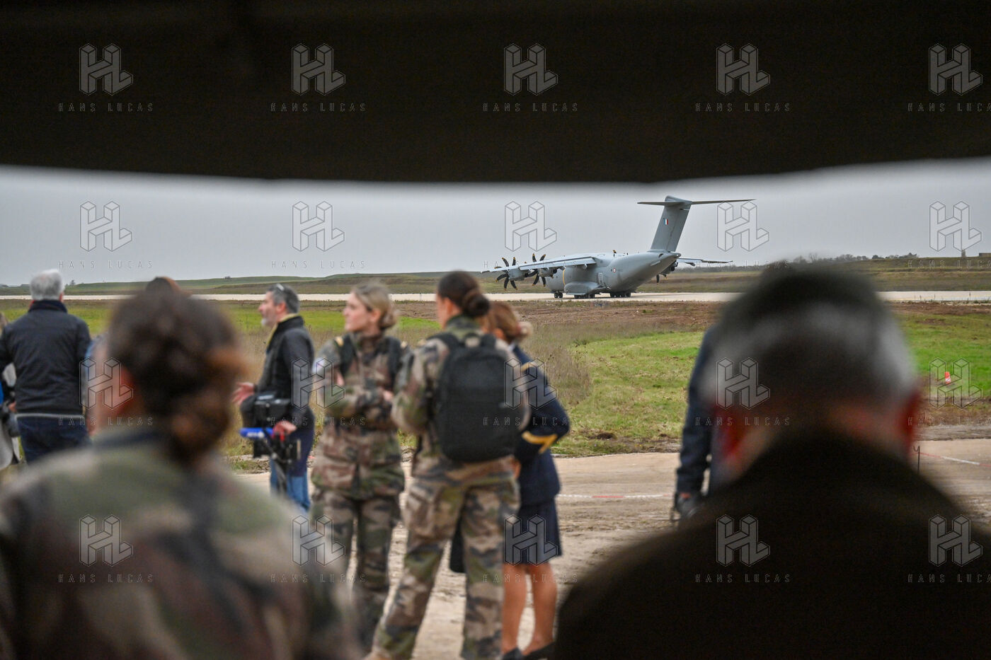 The Taranis exercise takes place at Air Base 123 Orleans Bricy, where transport aircraft and helicopters carry out maneuvers to strengthen crew tactical expertise in an increasingly tense geopolitical context. This full scale training aims to improve the skills of pilots mechanics and ground technicians facing high intensity scenarios and hybrid threats. In the sky A400M large grey military transport aircraft fly over the Orleans Bricy air base France.