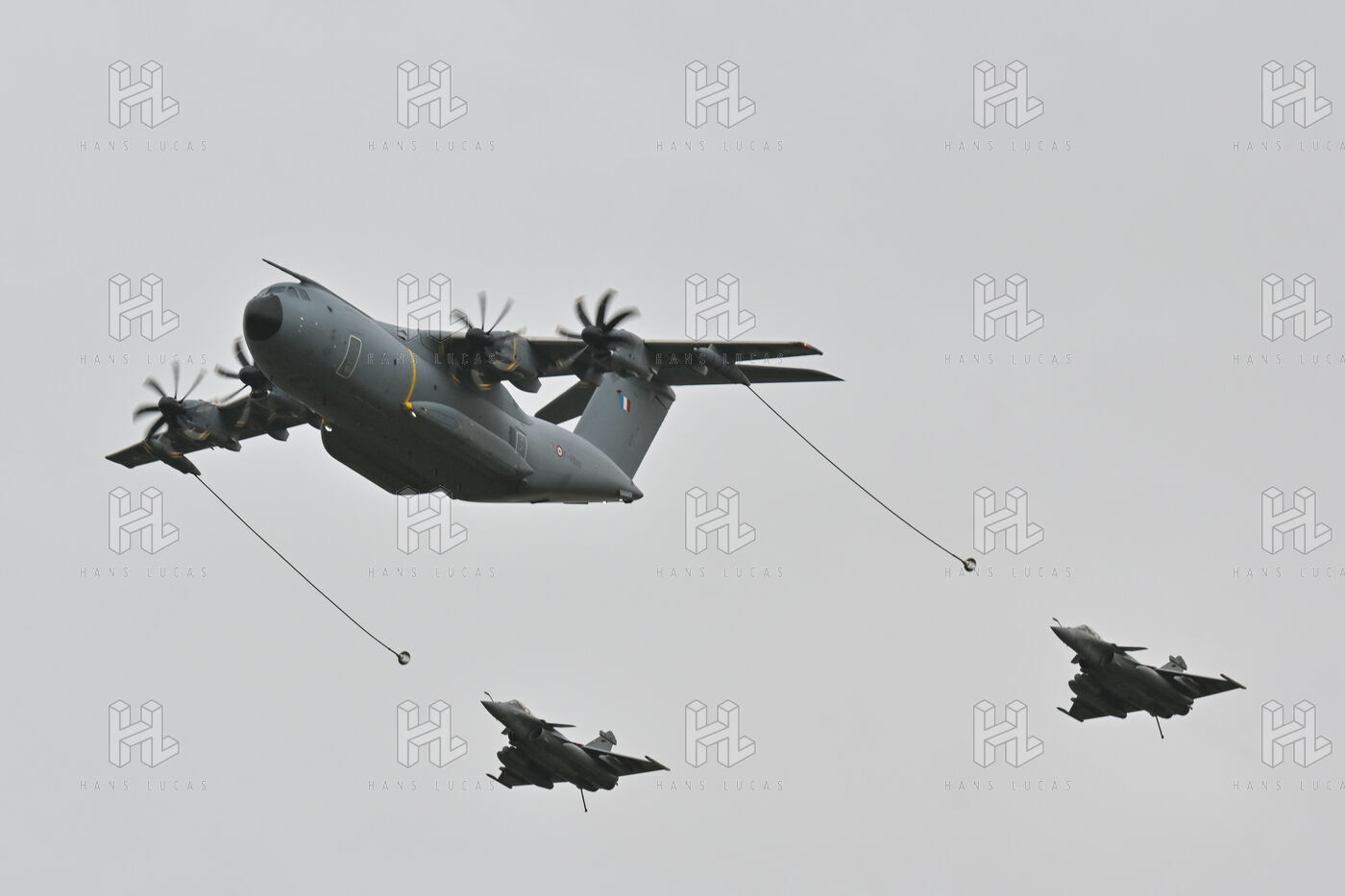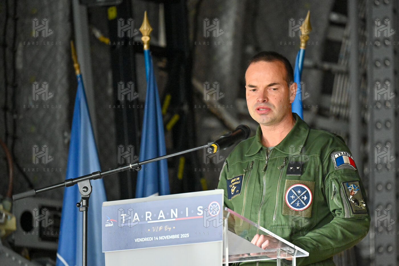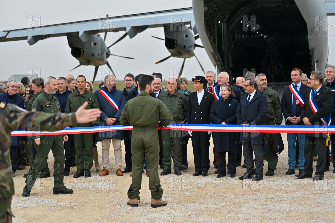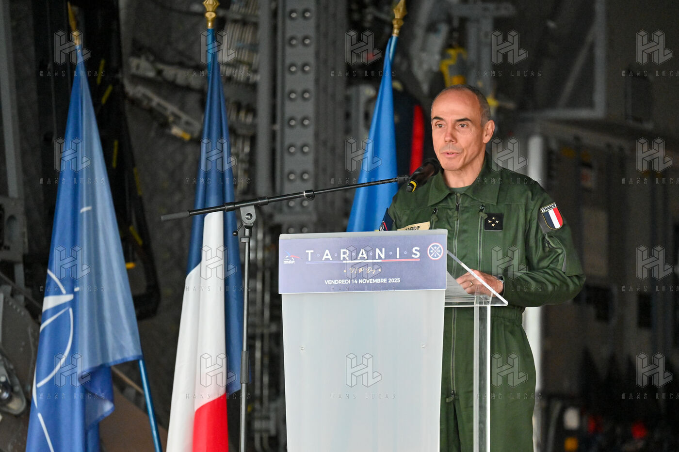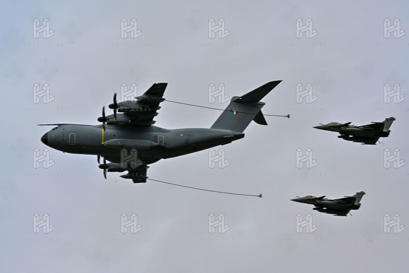 The Taranis exercise takes place at Air Base 123 Orleans Bricy, where transport aircraft and helicopters carry out maneuvers to strengthen crew tactical expertise in an increasingly tense geopolitical context. This full scale training aims to improve the skills of pilots mechanics and ground technicians facing high intensity scenarios and hybrid threats. In the sky A400M large grey military transport aircraft fly over the Orleans Bricy air base France.