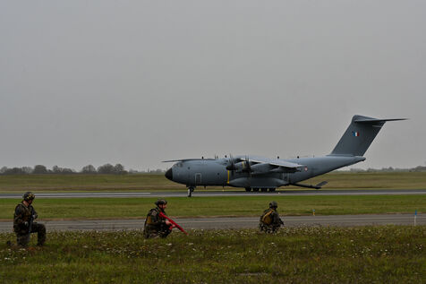 L’exercice Taranis se déroule sur la base aérienne 123 d’Orléans-Bricy, où avions de transport et hélicoptères enchaînent les manœuvres pour renforcer l’expertise tactique des équipages dans un contexte géopolitique de plus en plus tendu. Cet entraînement grandeur nature vise à perfectionner le savoir-faire des pilotes, mécaniciens et techniciens au sol, confrontés à des scénarios de haute intensité et des menaces hybrides. Dans le ciel, des A400M, gros avions gris de transport militaire, volent au-dessus de la base d’Orléans-Bricy.