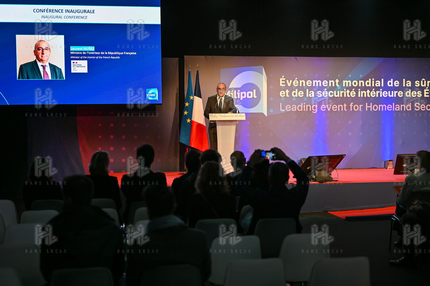 Opening of the MILIPOL 2025 exhibition, a global event dedicated to public safety and homeland security, inaugurated by French Interior Minister Laurent Nunez, in Villepinte.