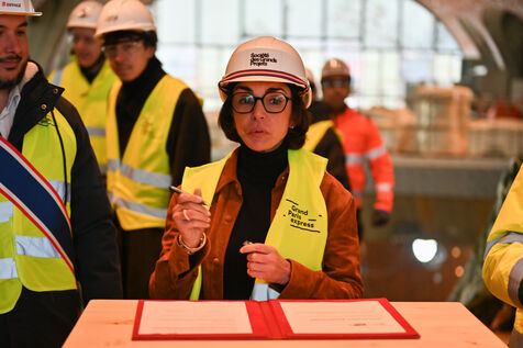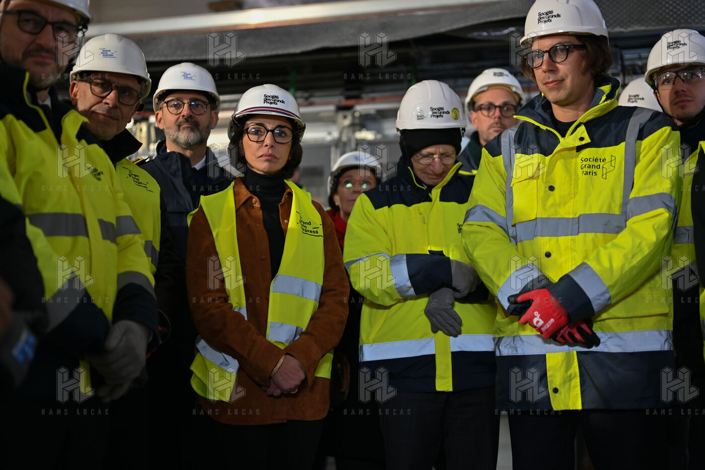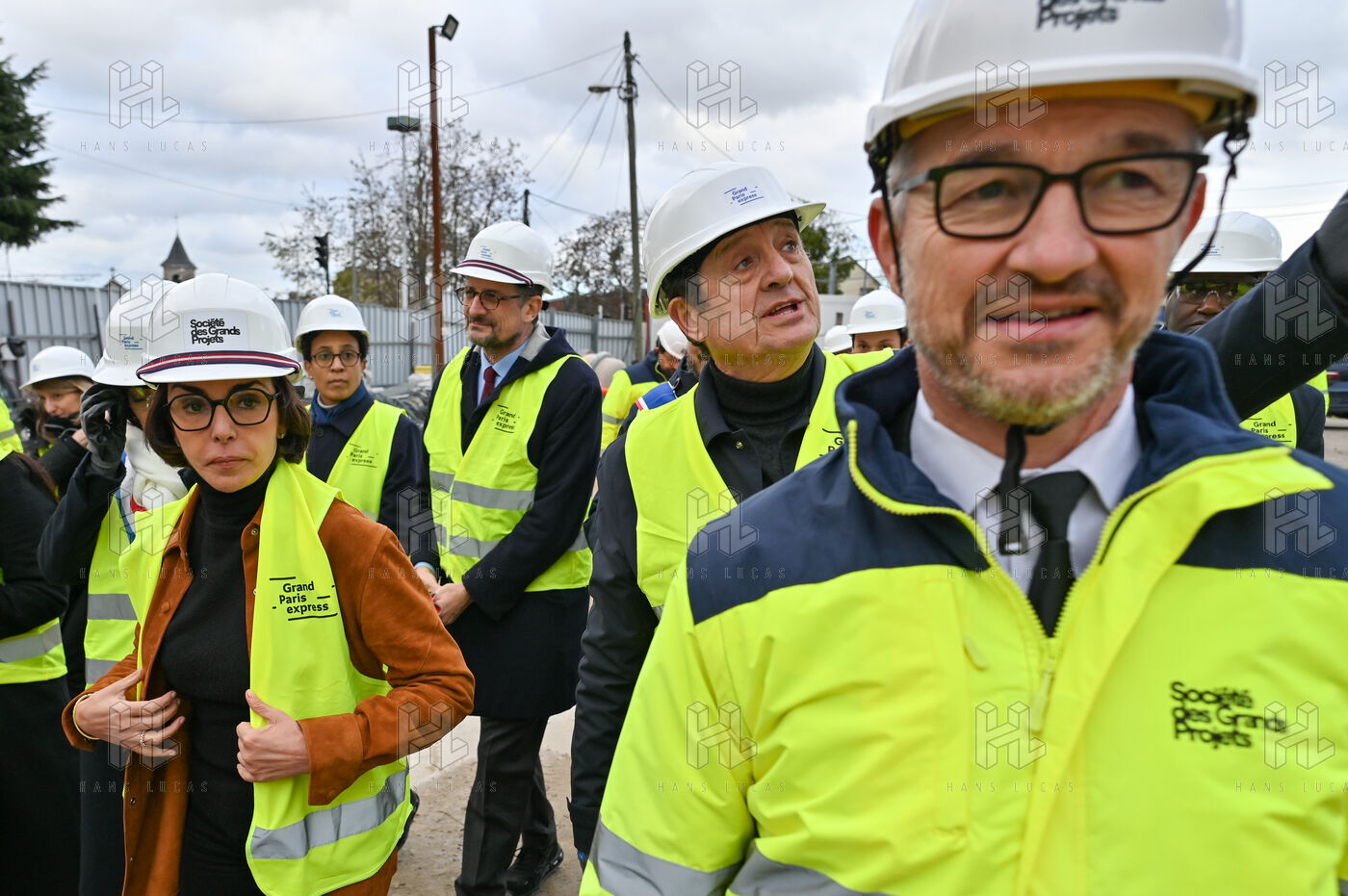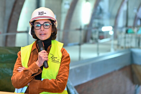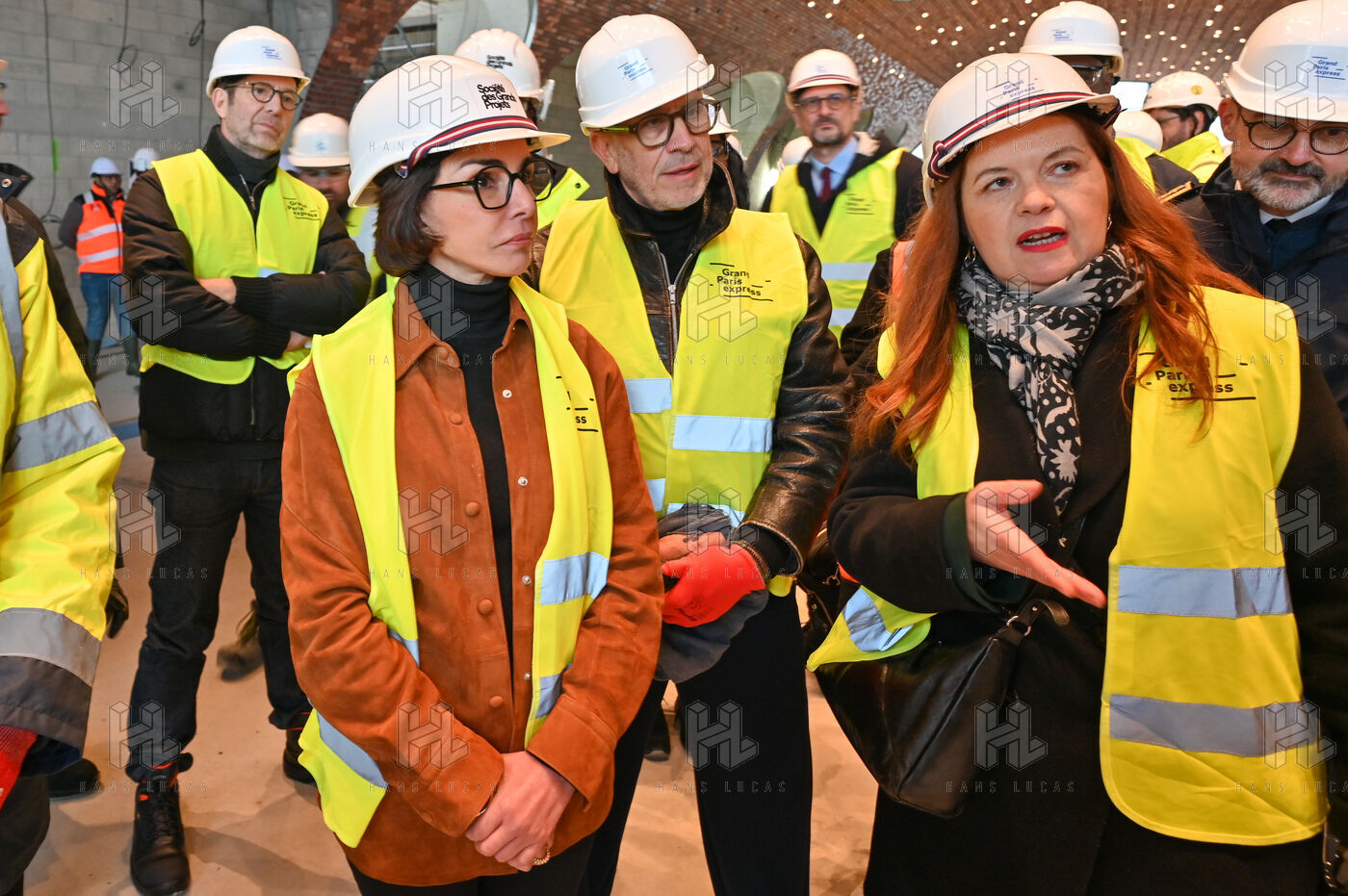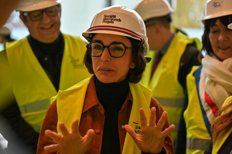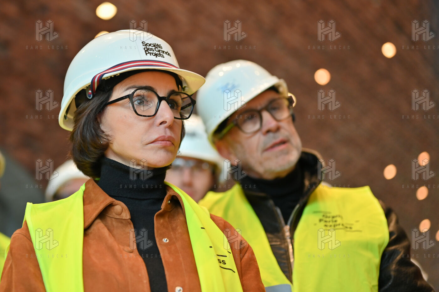 French Culture Minister Rachida Dati visits the construction site of the future La Courneuve station, a key project of the Grand Paris Express, in La Courneuve.