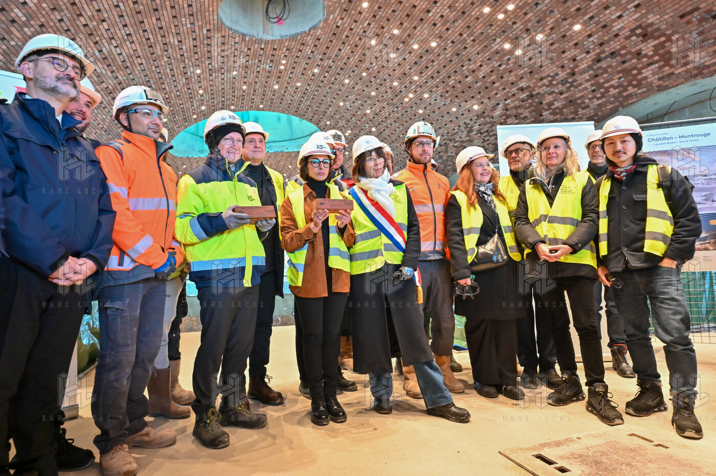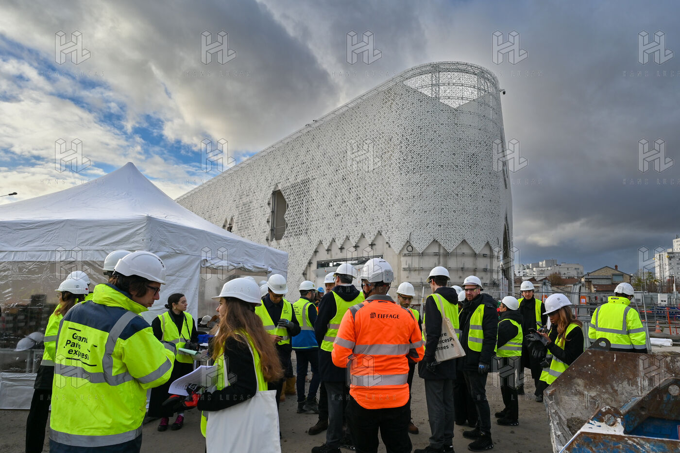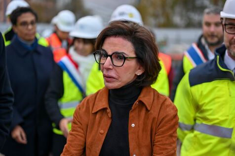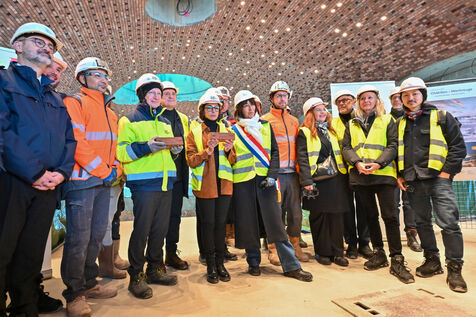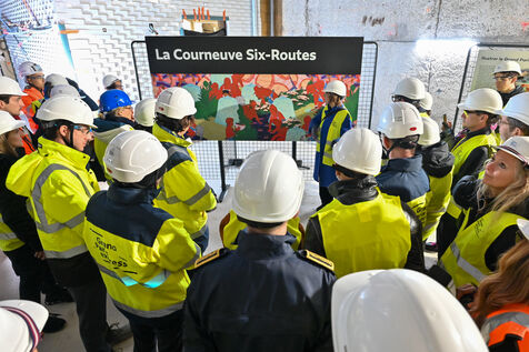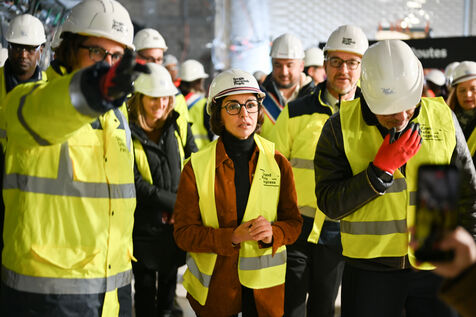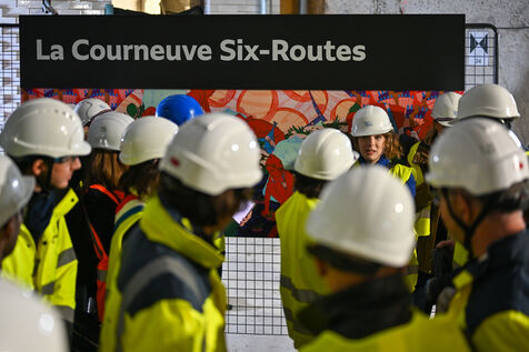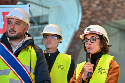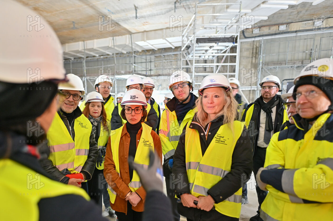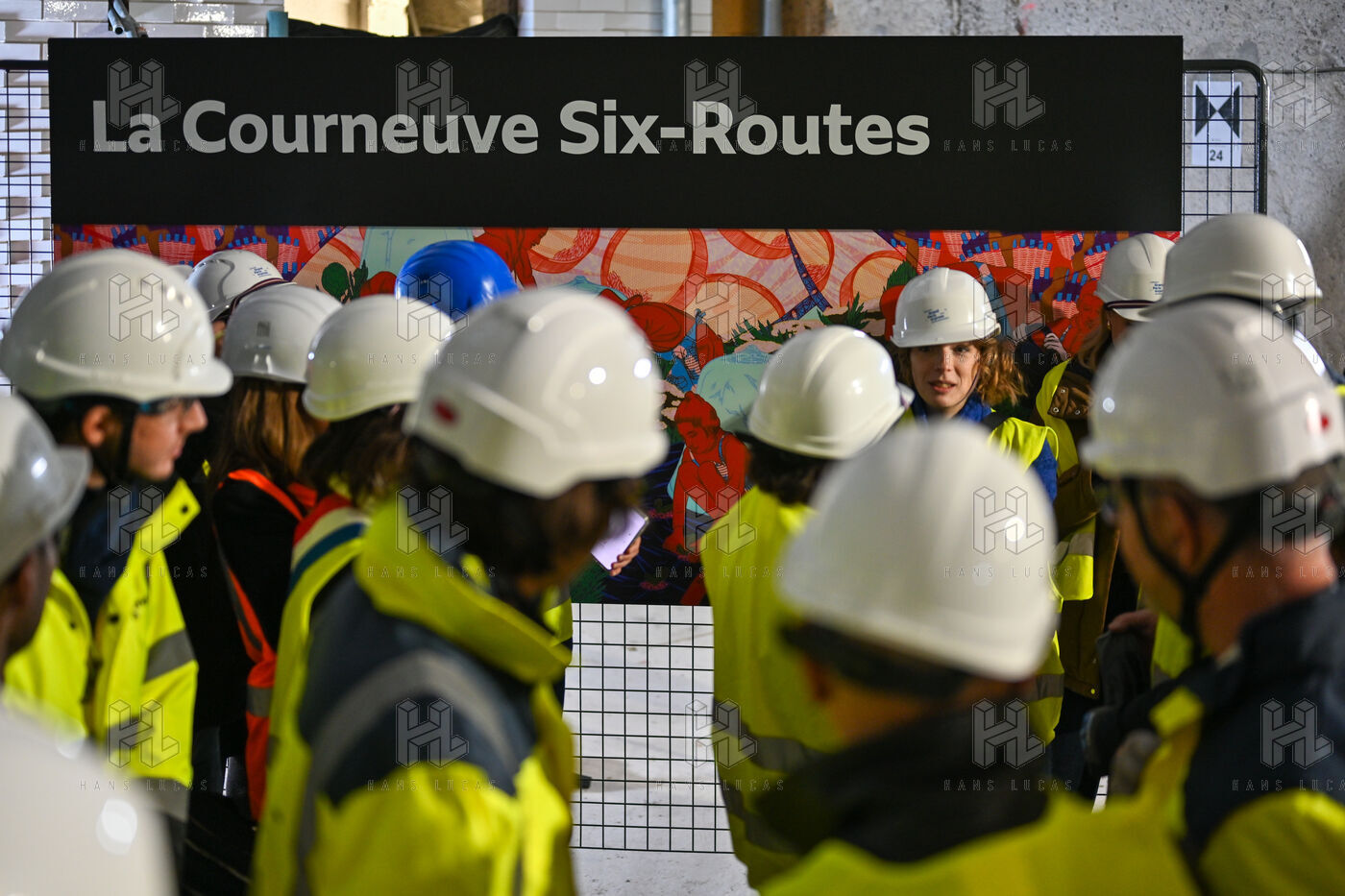French Culture Minister Rachida Dati visits the construction site of the future La Courneuve station, a key project of the Grand Paris Express, in La Courneuve.