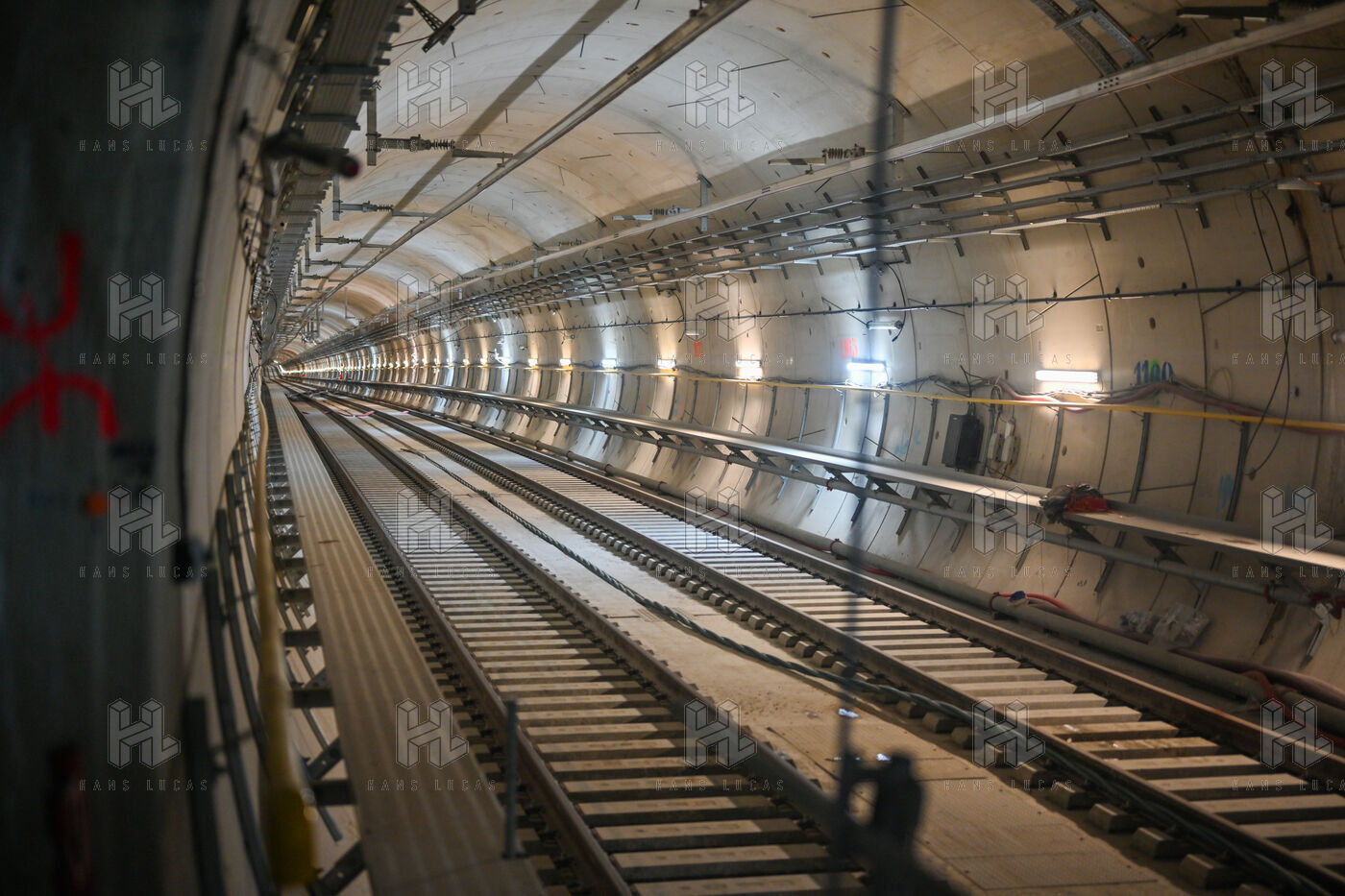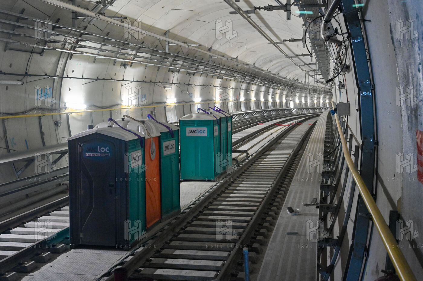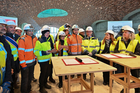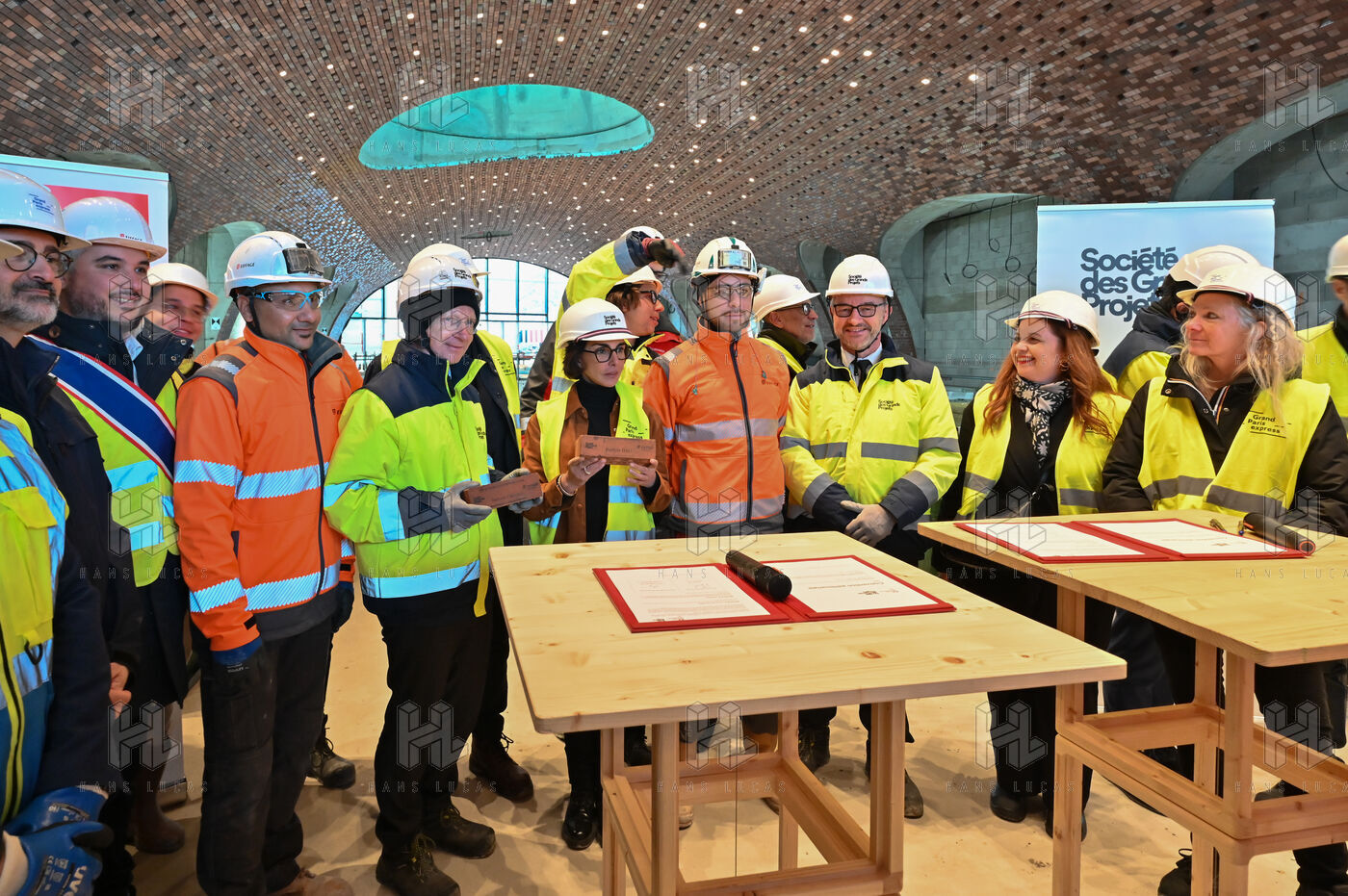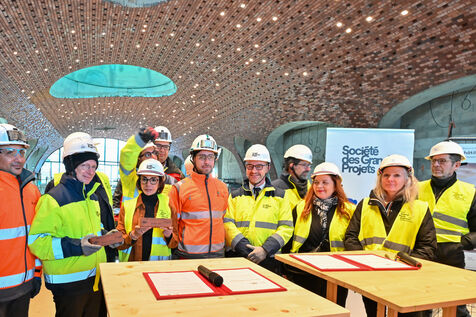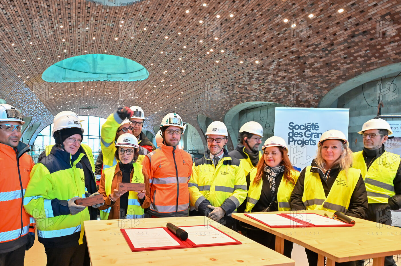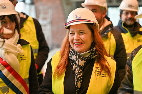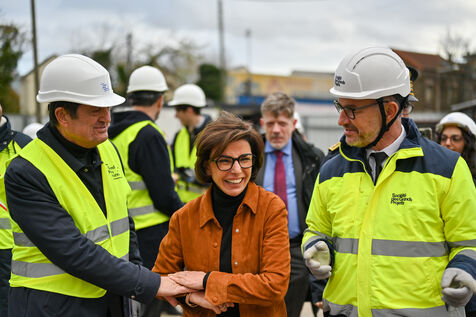 French Culture Minister Rachida Dati visits the construction site of the future La Courneuve station, a key project of the Grand Paris Express, in La Courneuve.