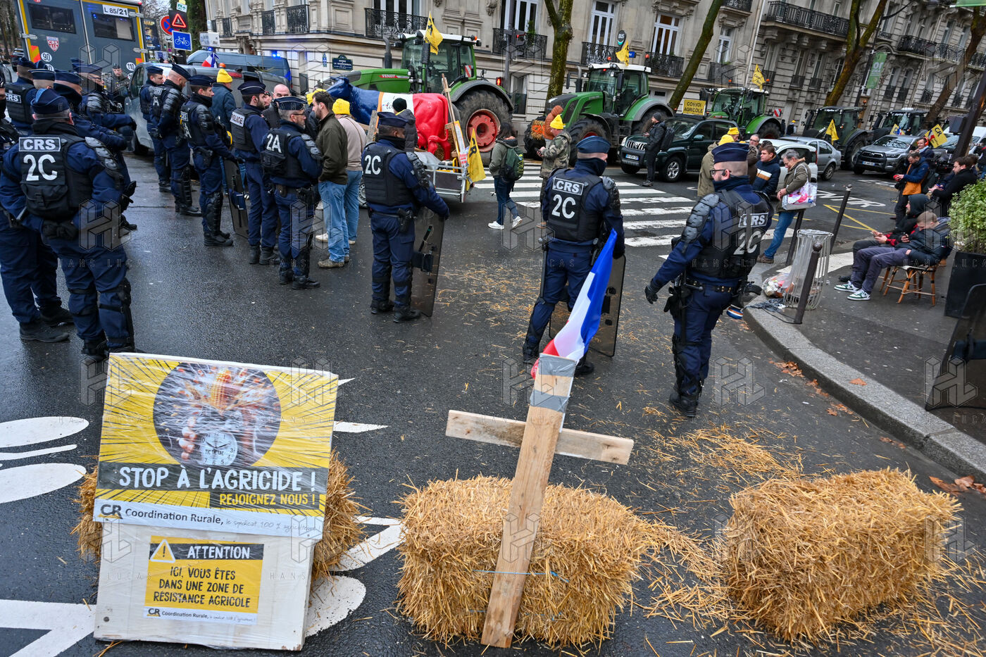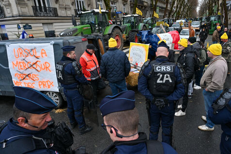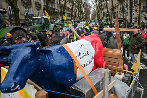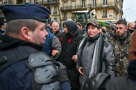 Angry farmers, notably from the Coordination Rurale, demonstrate in Paris despite the ban on tractor traffic.