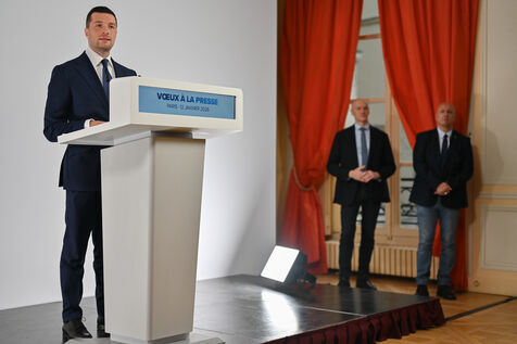 Jordan Bardella présente ses vœux à la presse pour cette nouvelle année 2026.