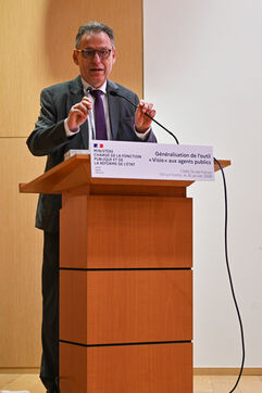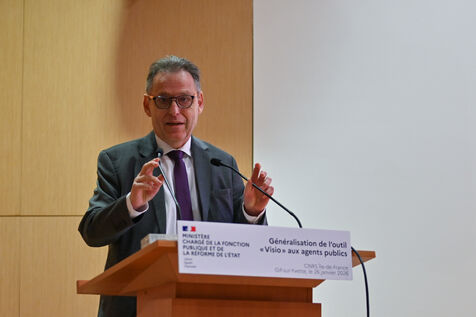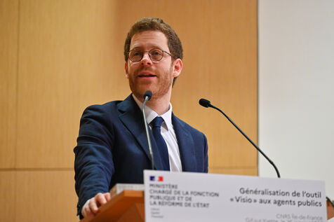 David Amiel, ministre délégué chargé de la Fonction publique et de la Réforme de l'Etat, s'est rendu au CNRS Ile-de-France lors d'un déplacement consacre aux annonces sur le déploiement d'outils numériques sécurisés et souverains au sein des services de l'Etat.