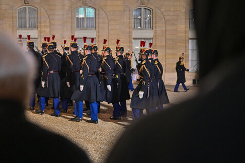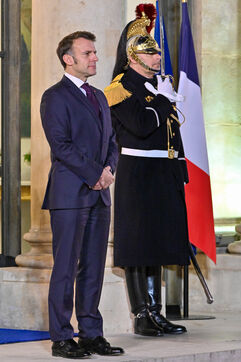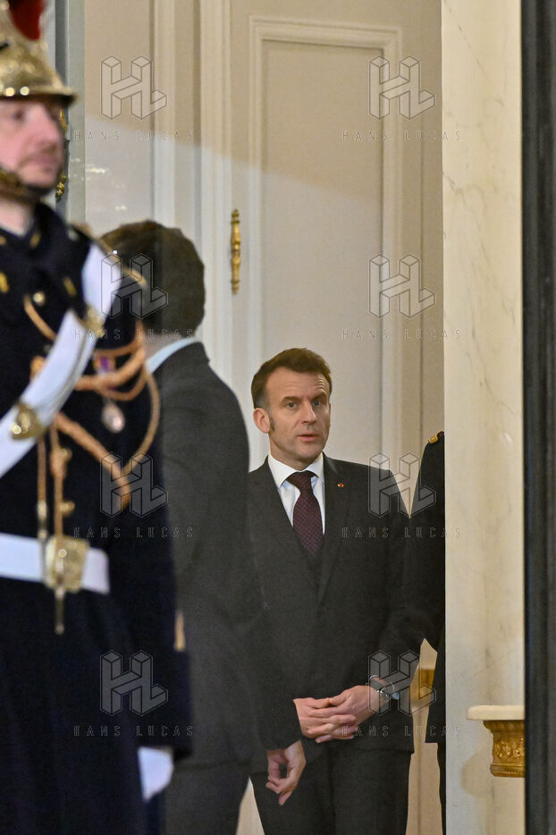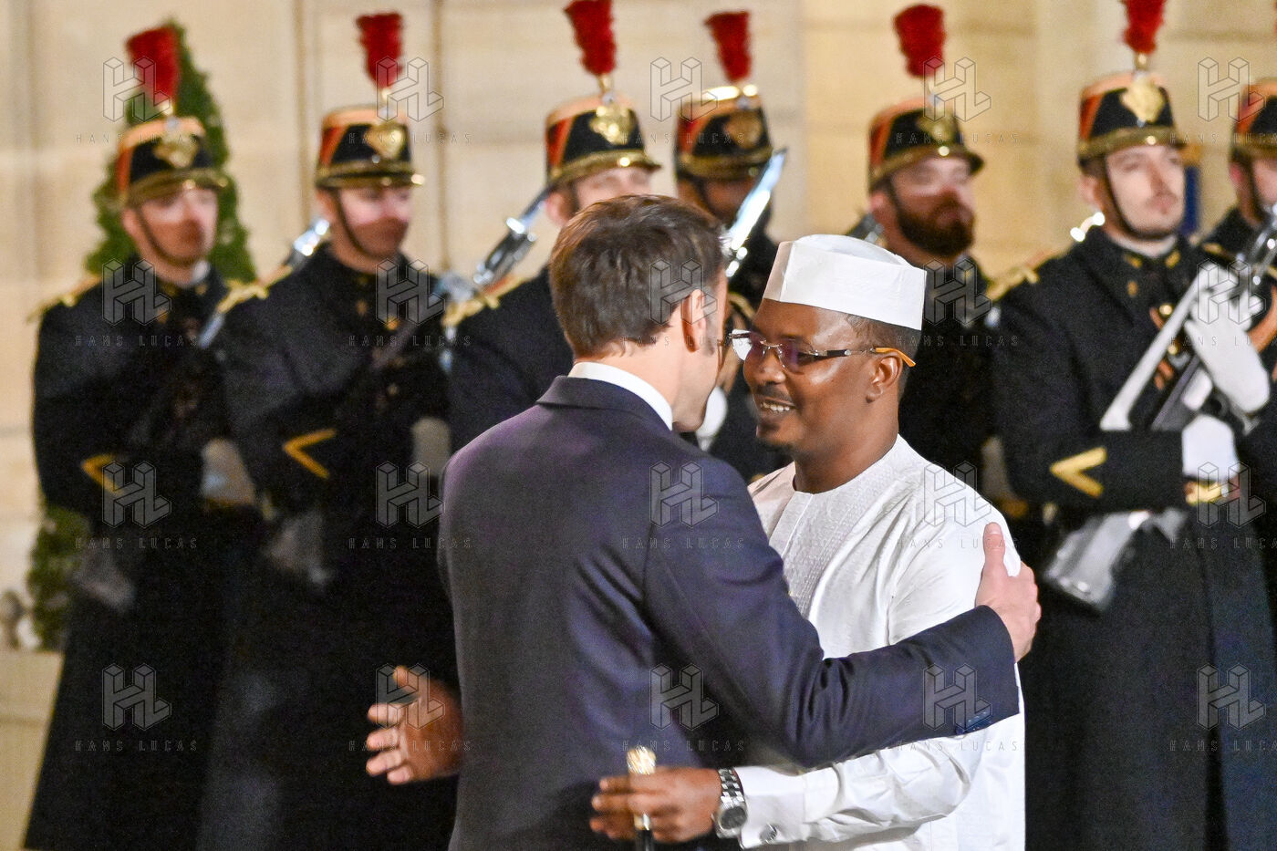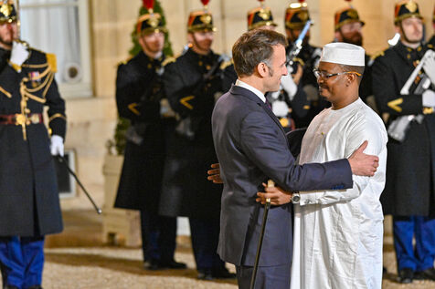 Emmanuel Macron, President of the French Republic, welcomes the President of the Republic of Chad, Mahamat Idriss Deby Itno, upon his arrival at the Elysee Palace.