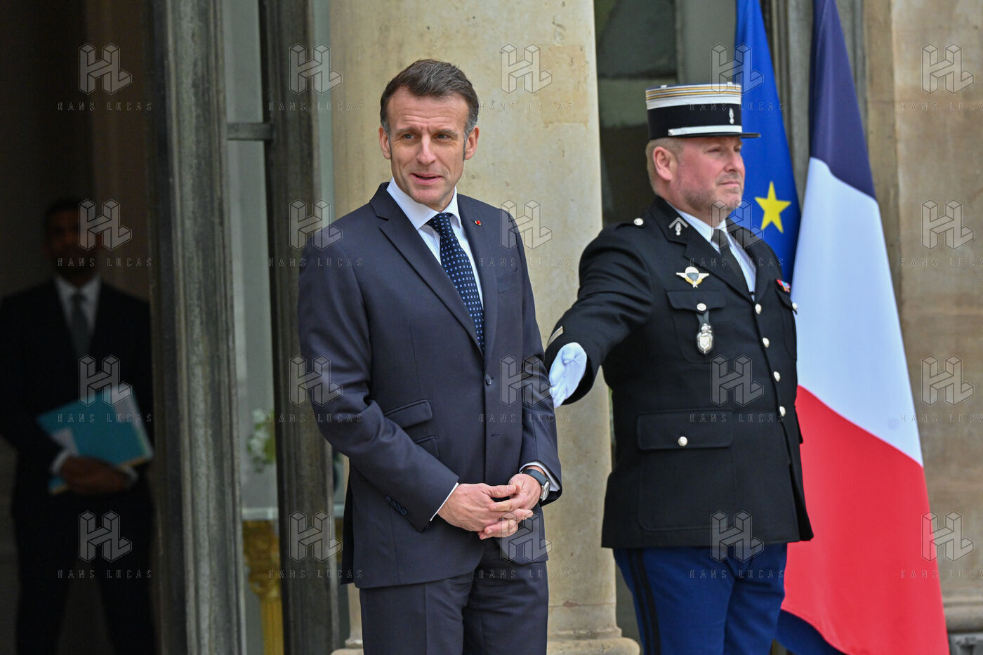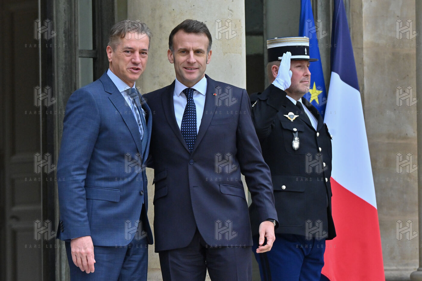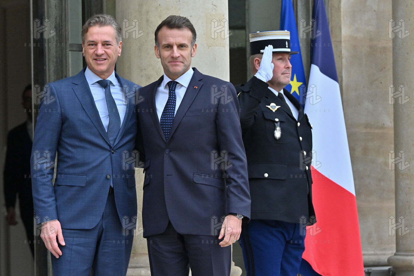 Emmanuel Macron, président de la République française, reçoit Robert Golob, Premier ministre de la République de Slovénie, pour un déjeuner de travail au Palais de l'Elysée.