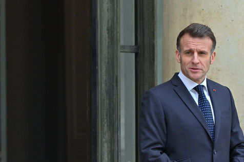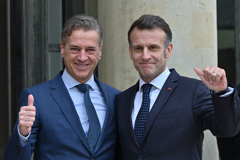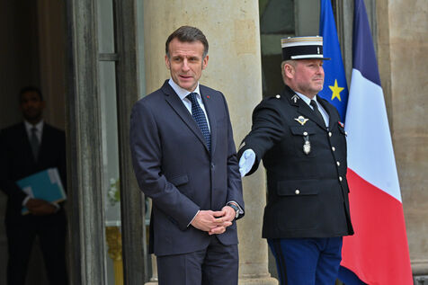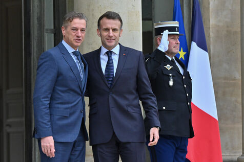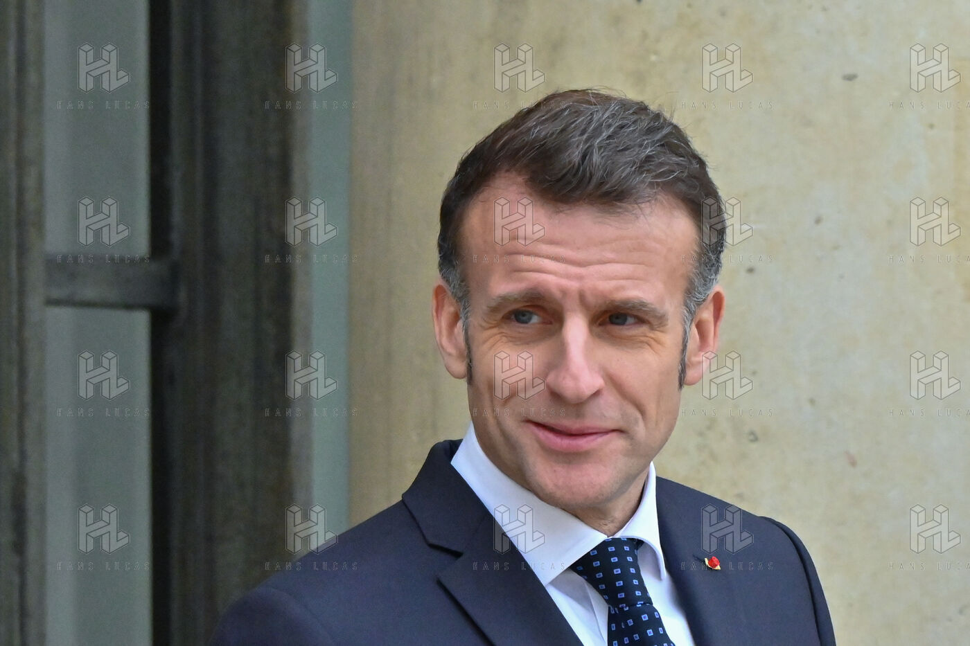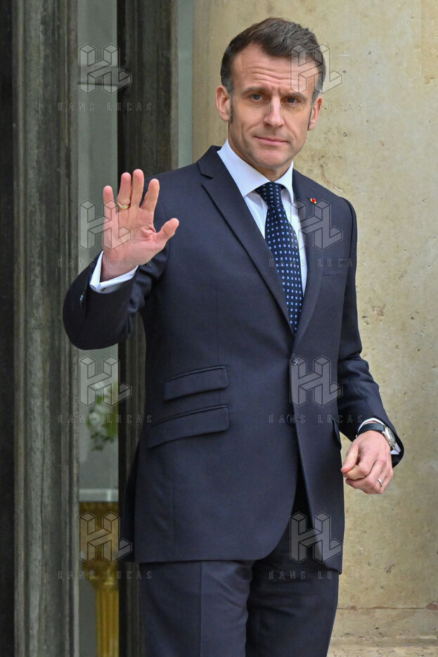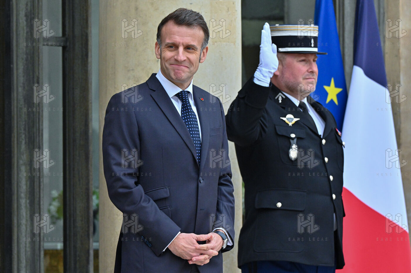 Emmanuel Macron, président de la République française, reçoit Robert Golob, Premier ministre de la République de Slovénie, pour un déjeuner de travail au Palais de l'Elysée.