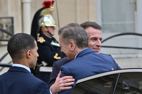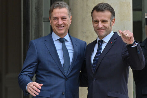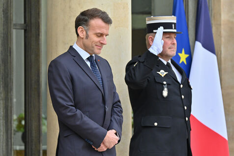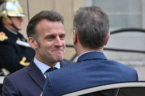 Emmanuel Macron, President of the French Republic, receives Robert Golob, Prime Minister of the Republic of Slovenia, for a working lunch at the Elysee Palace.