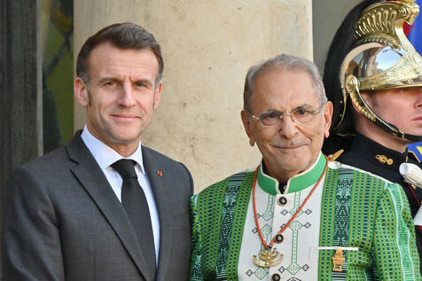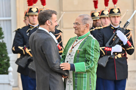 Emmanuel Macron, President of the French Republic, meets with José Manuel Ramos-Horta, President of the Democratic Republic of Timor-Leste and recipient of the 1996 Nobel Peace Prize, at the Elysée Palace.
