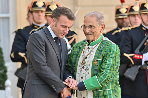 Emmanuel Macron, président de la République française, s'entretient avec José Manuel Ramos Horta, président de la République démocratique du Timor oriental et lauréat du Prix Nobel de la Paix en 1996, au Palais de l'Elysée.