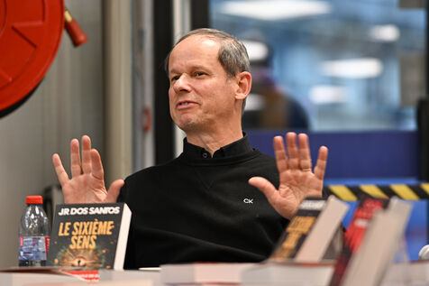 José Rodrigues Dos Santos en dédicace à la librairie Gibert Joseph pour son dernier livre Le sixième sens, à Paris.