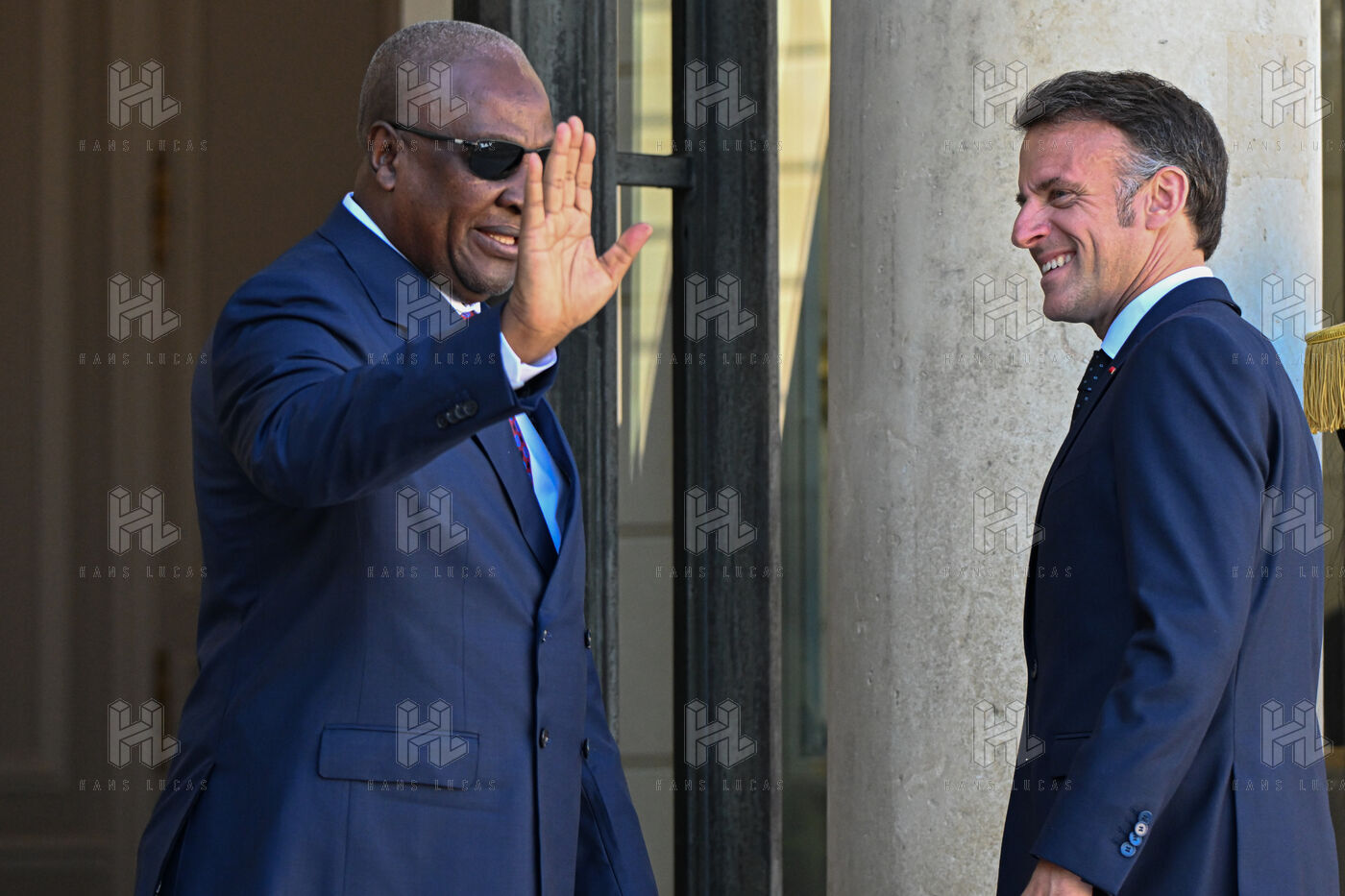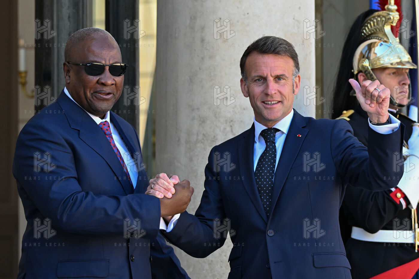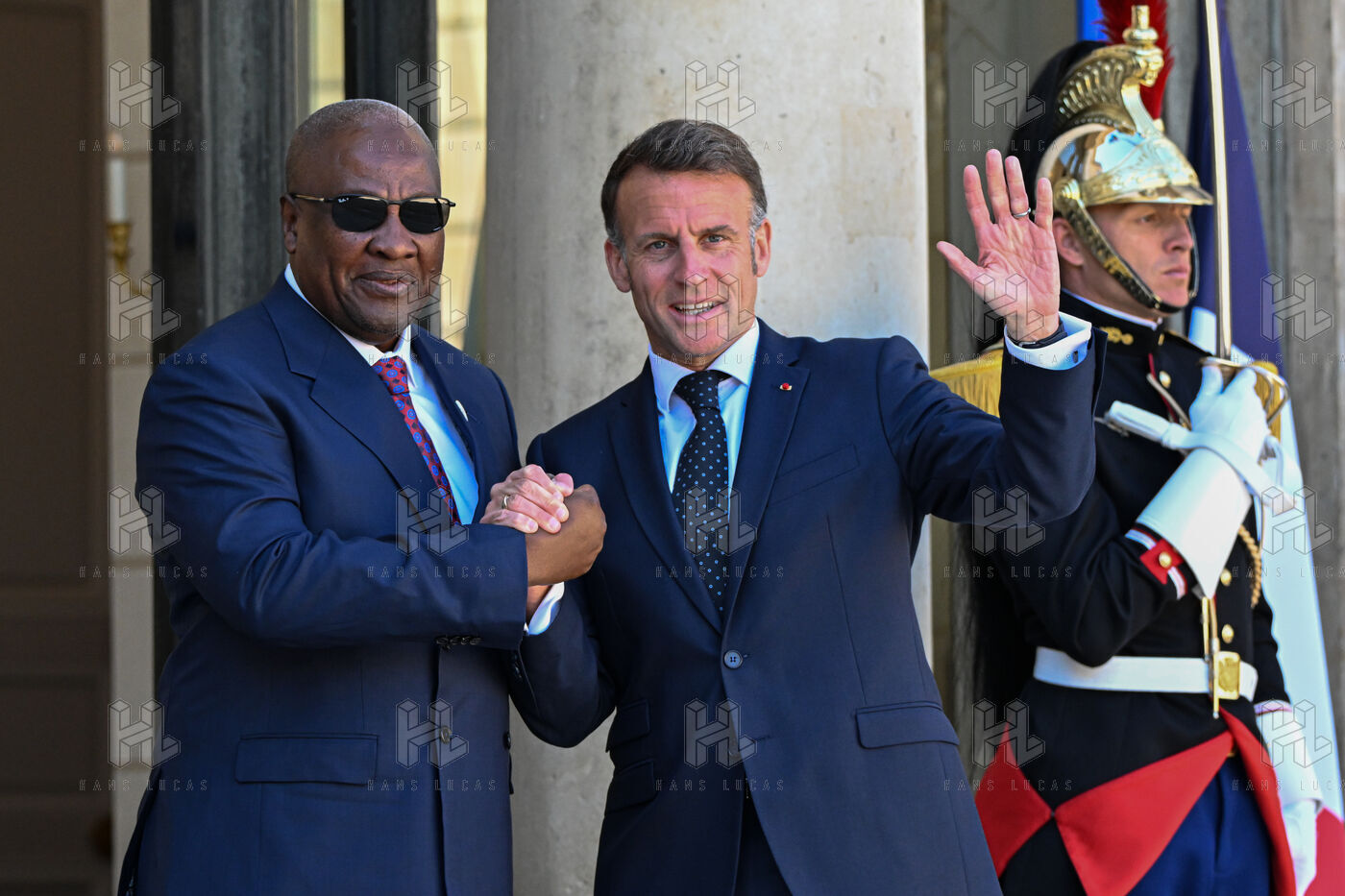 Emmanuel Macron, Président de la République française, reçoit John Dramani Mahama, Président de la République du Ghana, au Palais de l'Elysée.