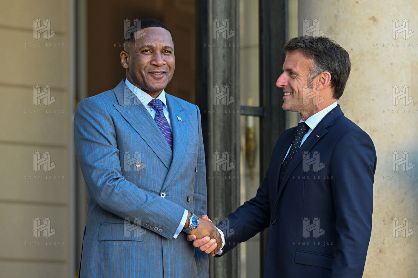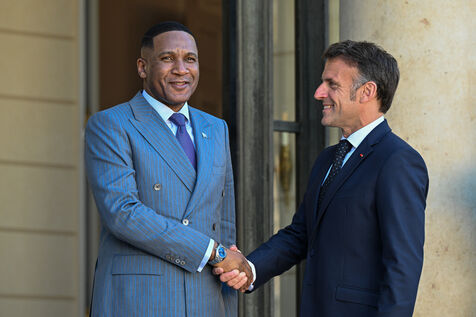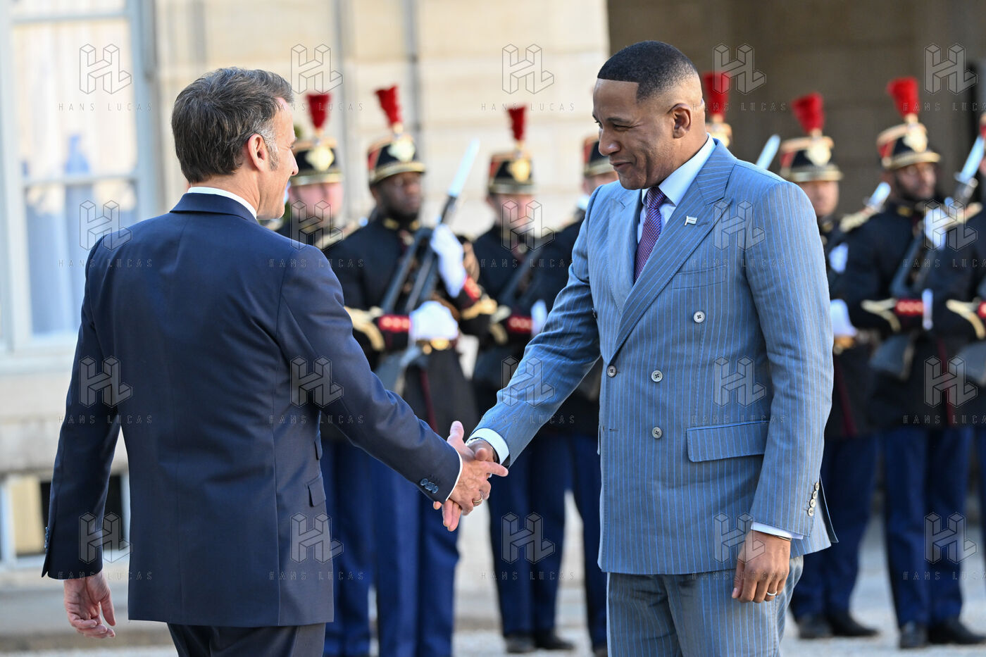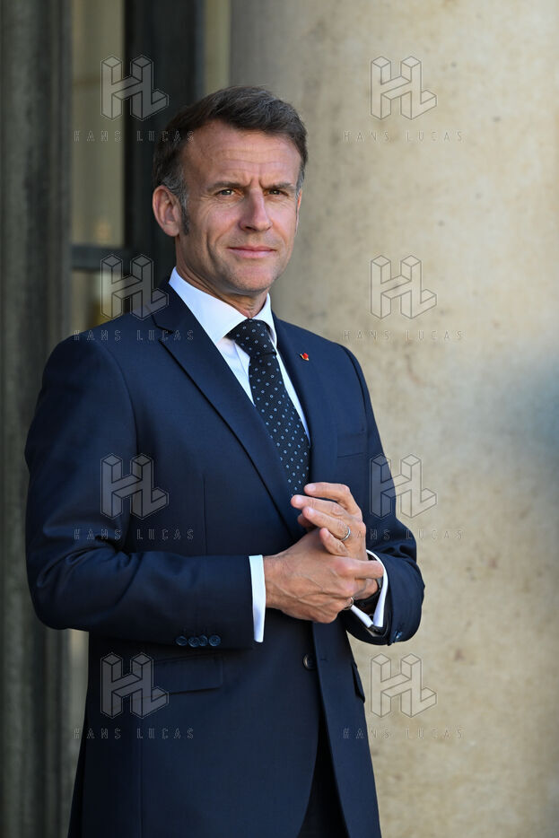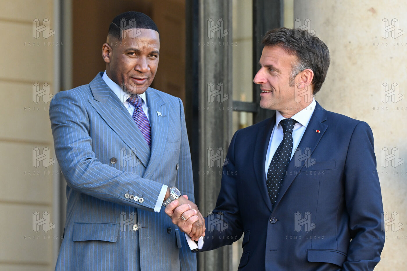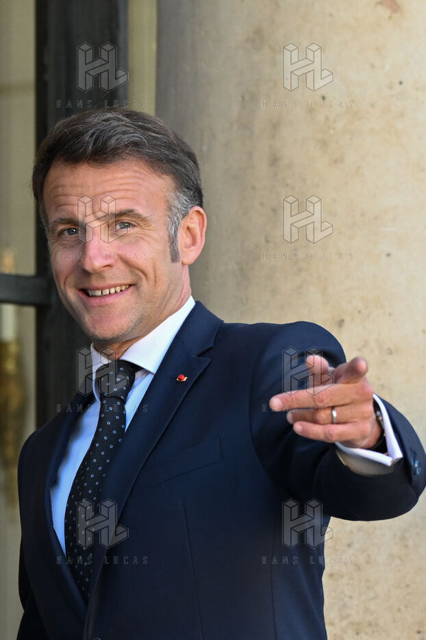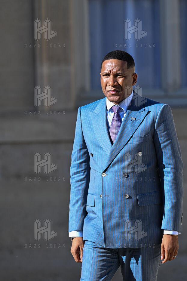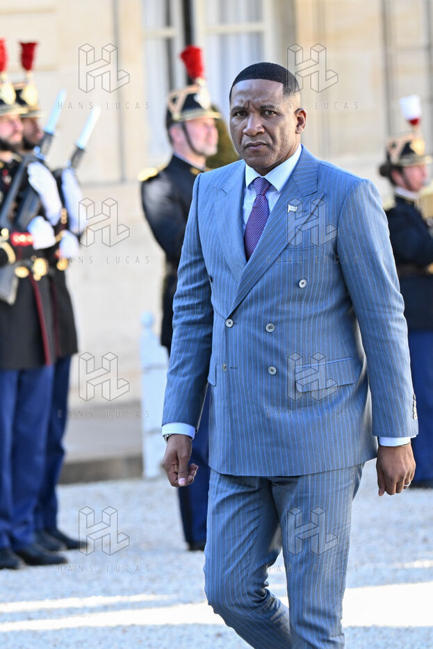 Emmanuel Macron, president of the French Republic, receives Duma Boko, president of the Republic of Botswana, at the Elysée Palace, in Paris.