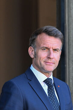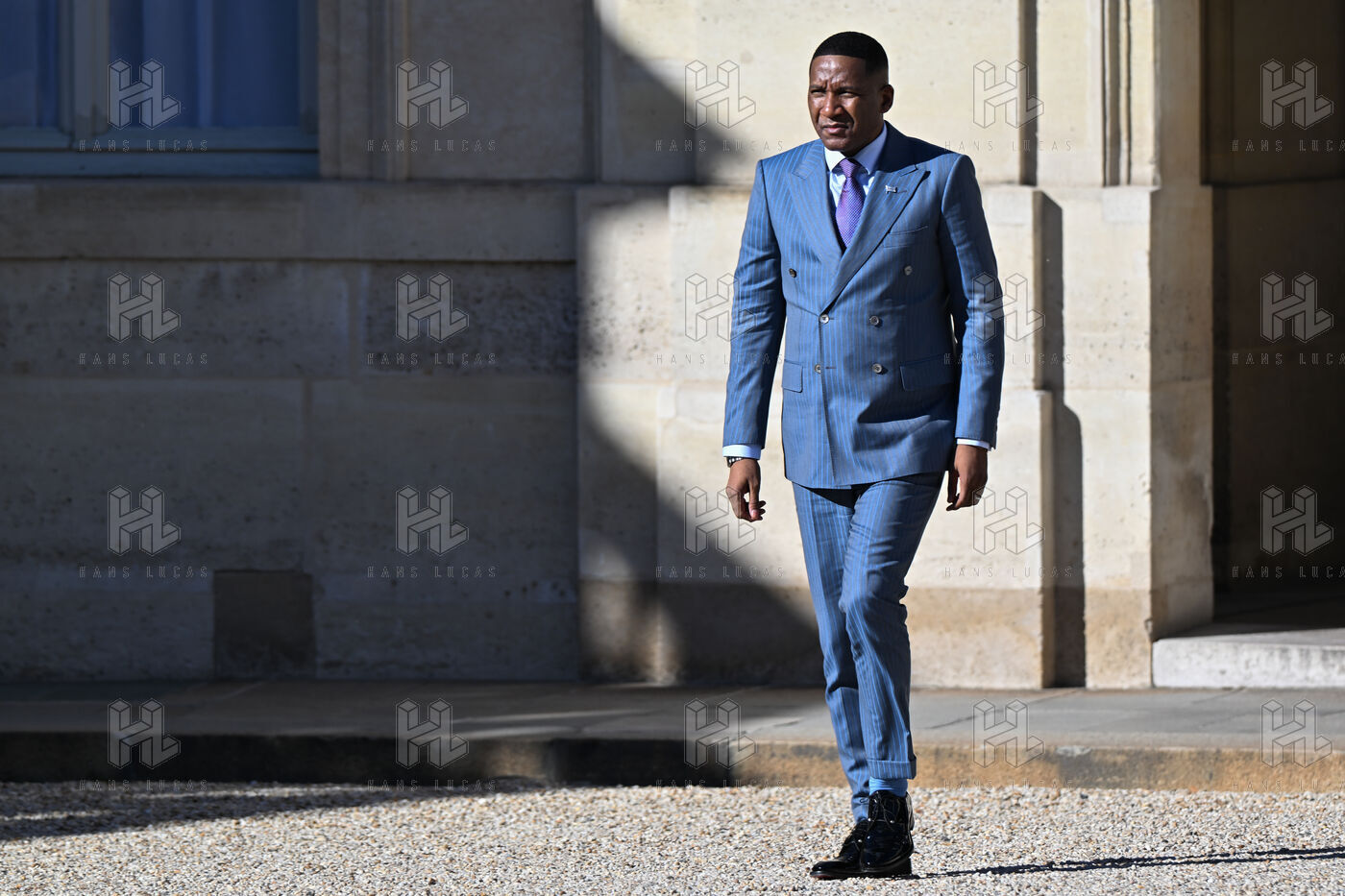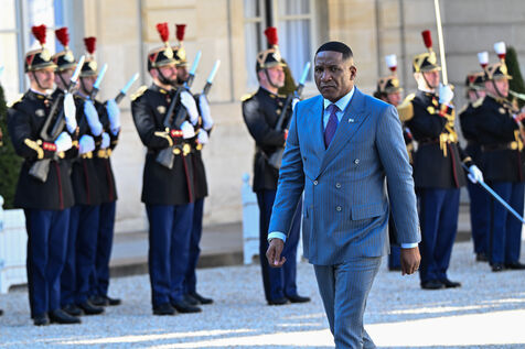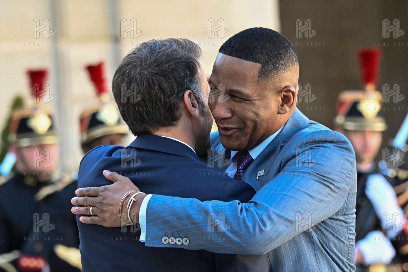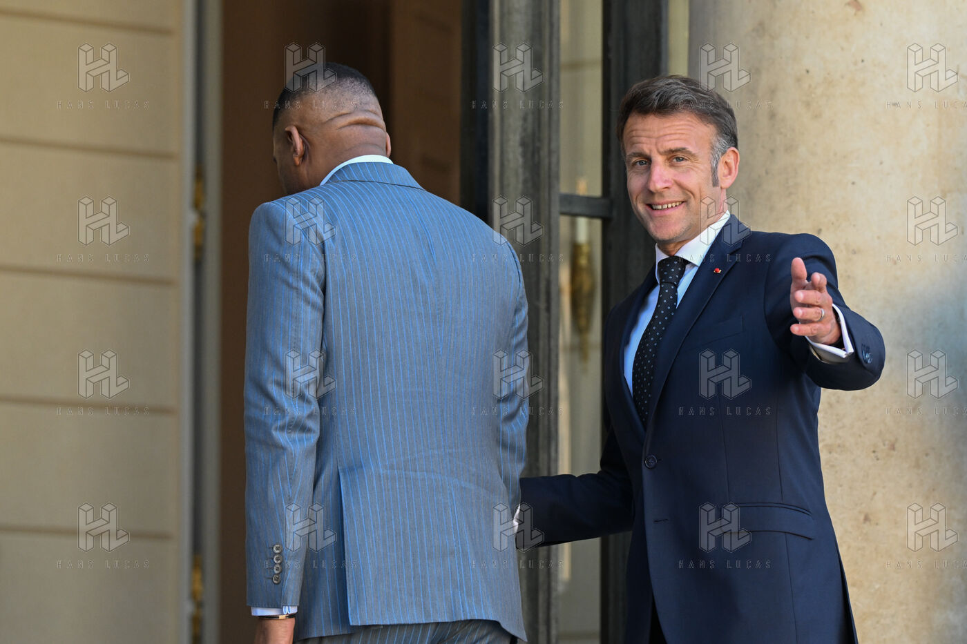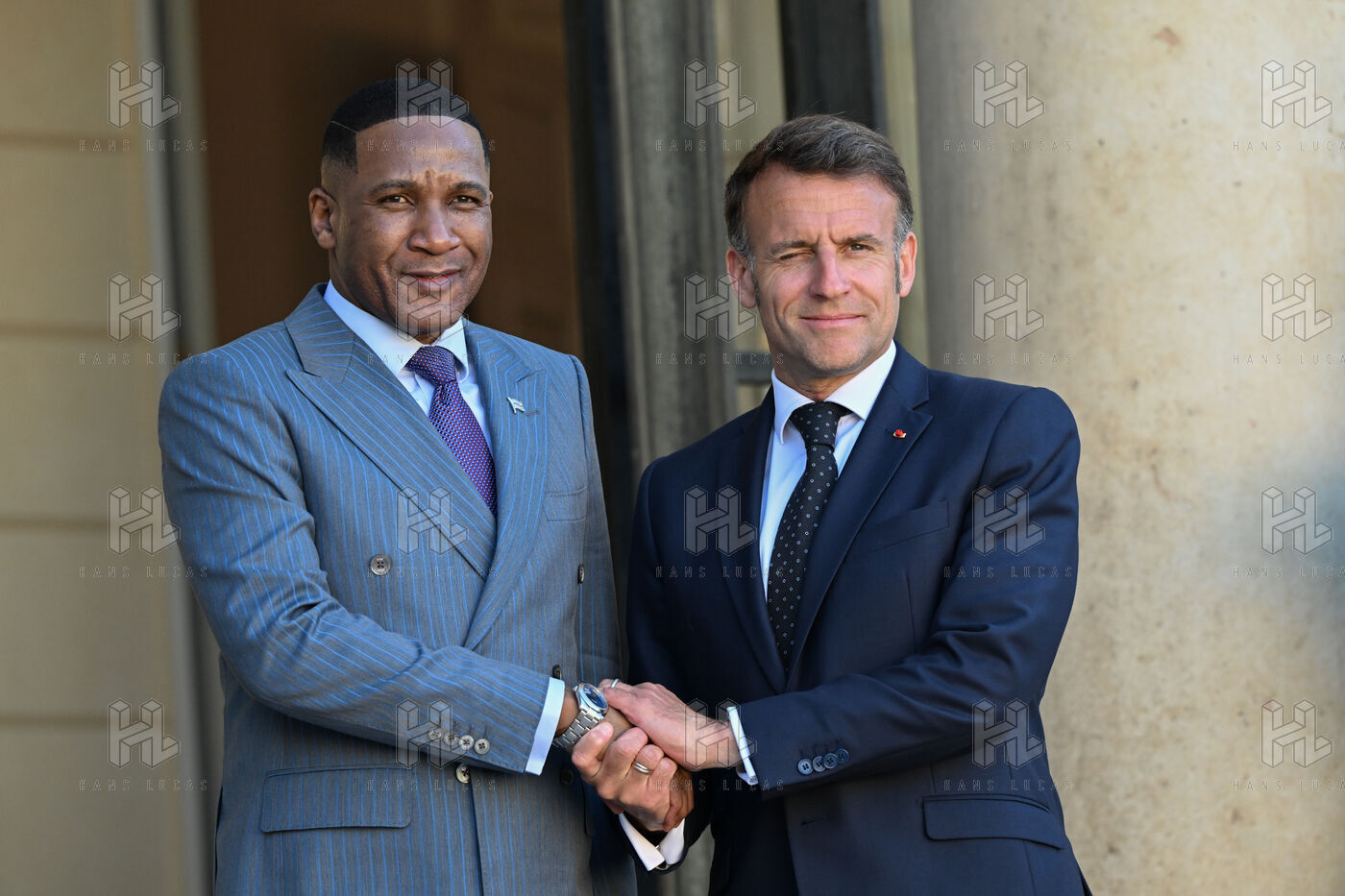 Emmanuel Macron, president of the French Republic, receives Duma Boko, president of the Republic of Botswana, at the Elysée Palace, in Paris.