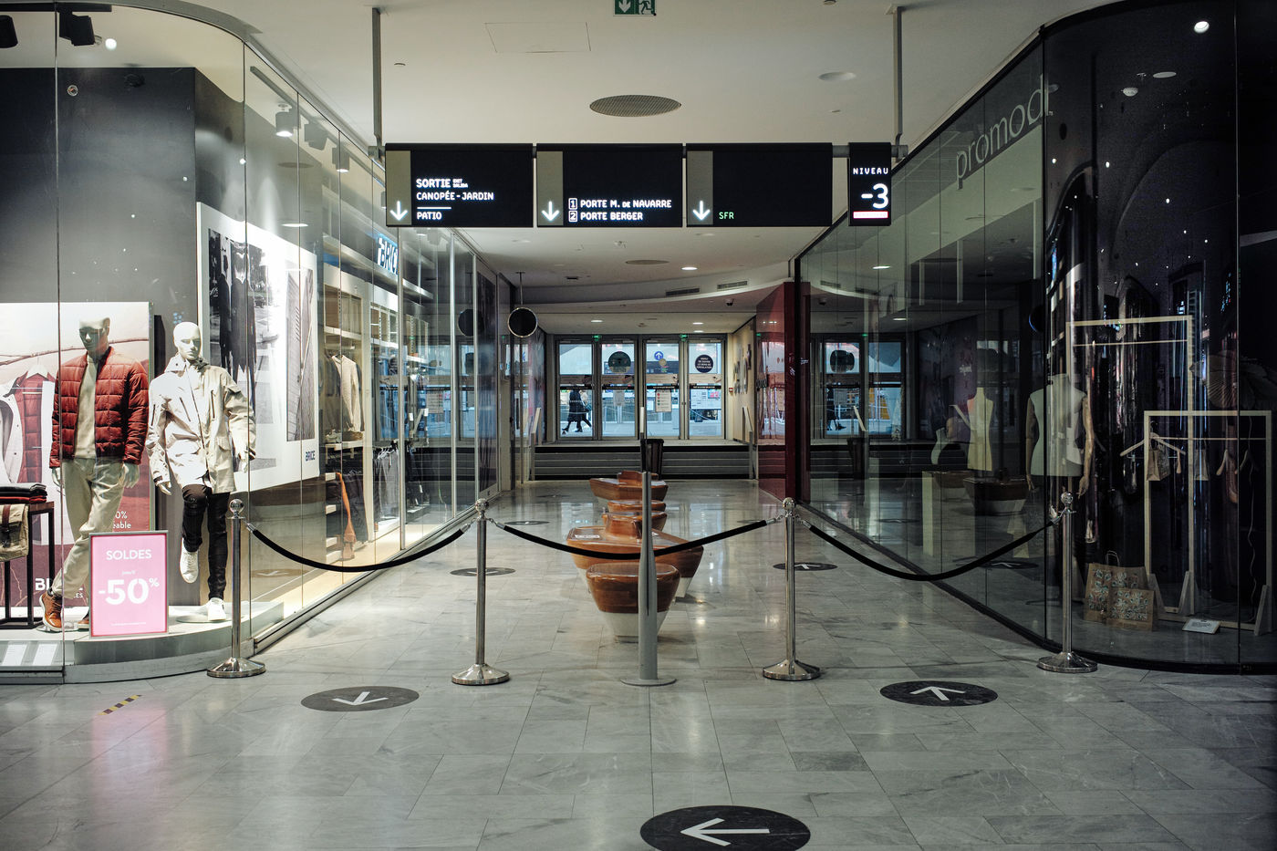 As a new phase in the fight against the Covid-19 epidemic, the government has taken the decision to force the closure of non-food shopping malls of more than 20,000 square meters. The Westfield Forum des Halles shopping complex has closed its stores, some accesses are even forbidden.©