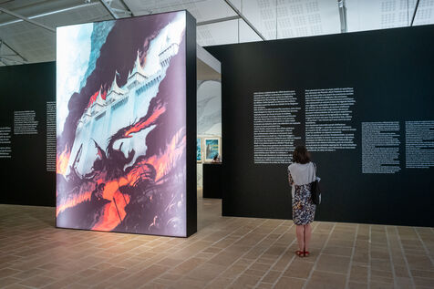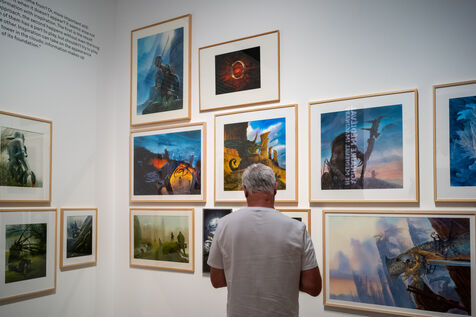 26 JUNE 2023, LANDERNEAU (29), FRANCE. Exhibition: "IN THE TRACES OF TOLKIEN AND THE MEDIEVAL IMAGINARY Paintings and drawings by John Howe at the Fonds Hélène&Edouard Leclerc. Created by Diane and Jean-Jacques Launier, the exhibition comments on Tolkien's work and the origin of medieval legends. The exhibition features more than 250 drawings and paintings by John Howe (illustrator of Tolkien's novels, and artistic director alongside Peter Jackson of the two film trilogies The Lord of the Rings and The Hobbit).