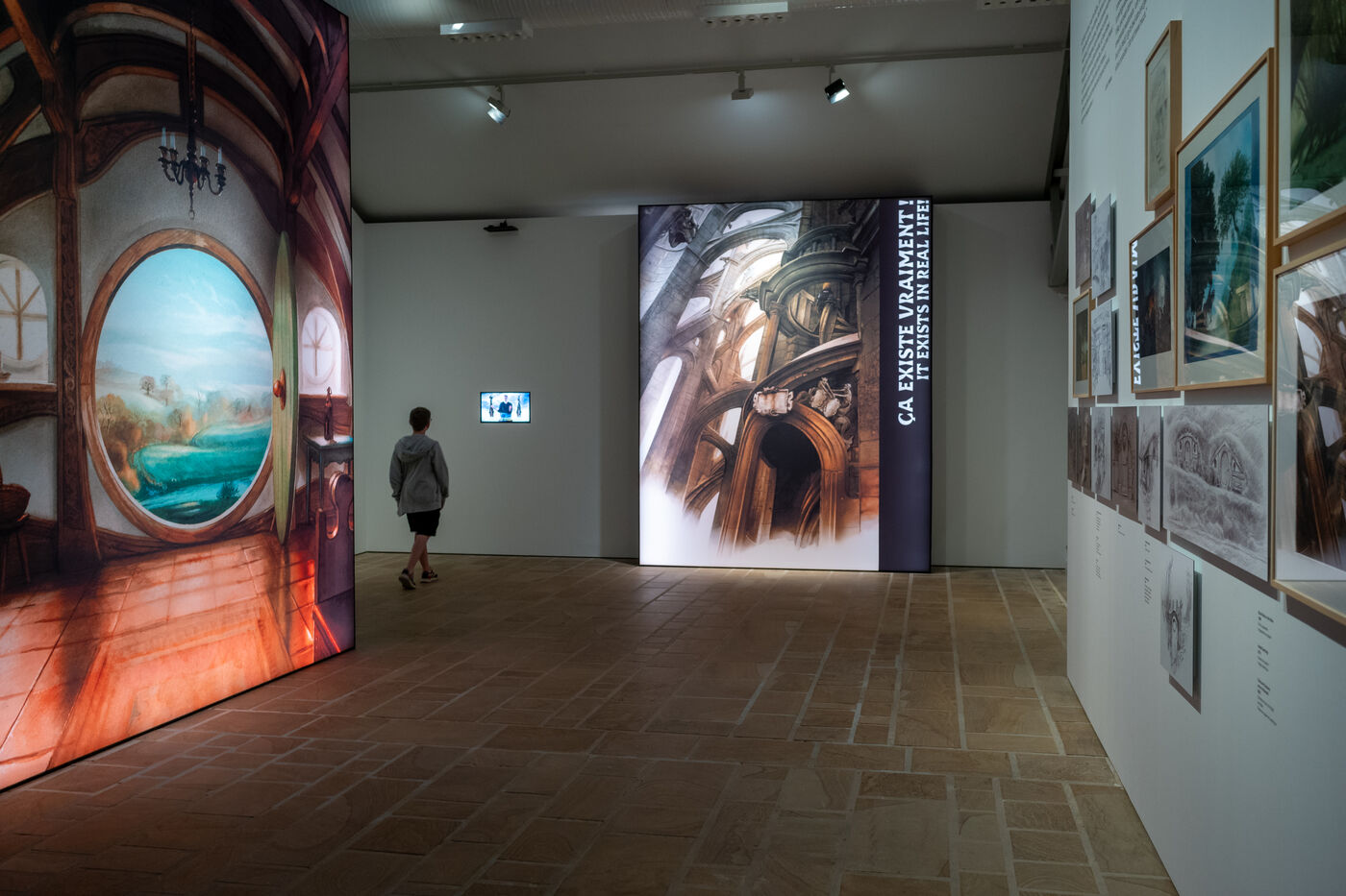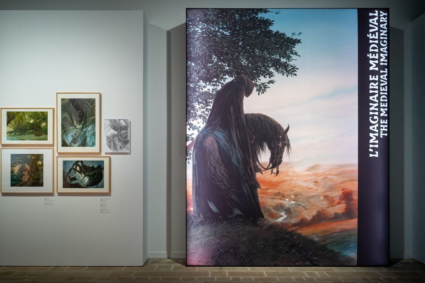 26 JUIN 2023, LANDERNEAU (29), FRANCE. Exposition : « SUR LES TRACES DE TOLKIEN ET DE L'IMAGINAIRE MÉDIÉVAL » Peintures et dessins de John Howe aux Fonds Hélène&Edouard Leclerc. Creee par Diane et Jean-Jacques Launier, l exposition commente l oeuvre de Tolkien et l origine des legendes medievales. L exposition presente plus de 250 dessins et peintures de John Howe (illustrateur des romans de Tolkien, participe a la direction artistique aux cotes du realisateur Peter Jackson des deux trilogies cinematographiques Le Seigneur des Anneaux, et Le Hobbit).