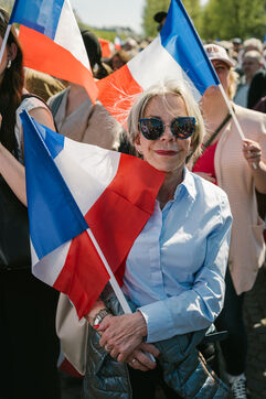 2025 04 06, PARIS (75), France. A rally in Place Vauban in support of Marine Le Pen, after she was sentenced to five years ineligibility, denounced by her supporters as a ‘political decision’. On Monday 31 March, she was found guilty of misappropriating public funds in the case of the Front National's parliamentary assistants at the European Parliament.