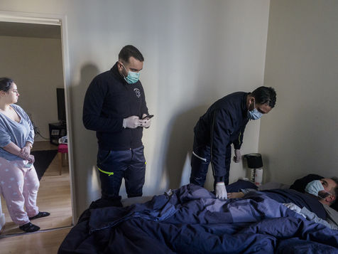 Paris 1er Avril 2020. Les ambulances75 vont chercher les habitants dont certains sont suspectes d etre contamines par le Covid-19. Jawad et Othmane, ambulanciers, ne cessent de recevoir des SMS du SAMU pour aller chercher des habitants dont l etat de sante inquiete. Ils manquent de moyens de protection (pas assez de masque, pas de blouse) et font environ 15 interventions par jour. Ils se sont eloignes de leur femme afin de les proteger.