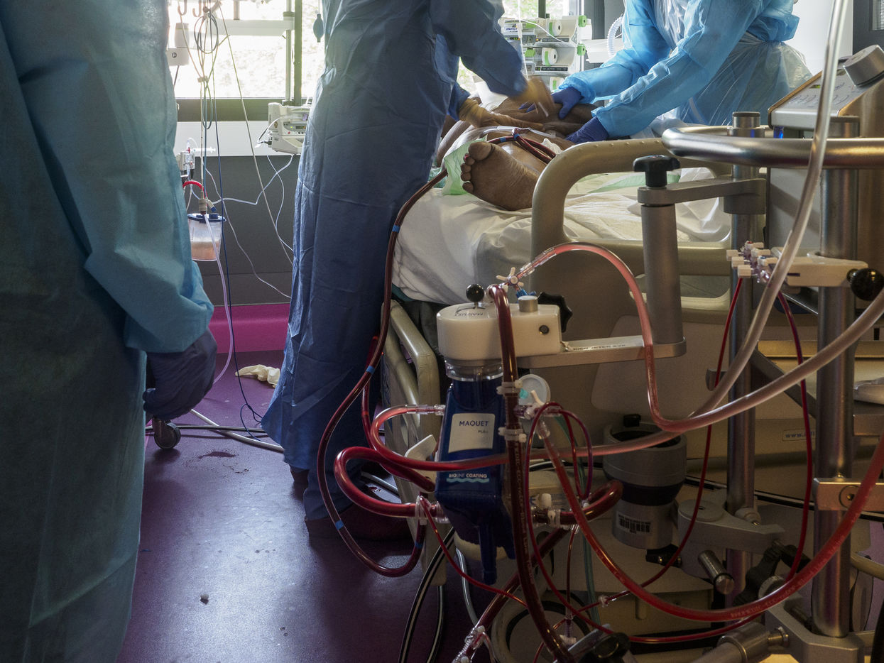 Saint-Denis, Center Cardiology North (CCN), 10 April 2020. The CCN, a private centre, welcomes Covid-19 patients and benefits from a highly efficient reanimation service. The service has cancelled some operations and installed 20 additional reanimation beds to relieve the hospitals around Seine Saint Denis particularly overloaded. Many patients are intubated or even placed on artificial respirators. Dr. Moricheau-Beauchant teams have been working without release since the beginning of the health crisis. After reanimation, patients are transferred to individual rooms or they are followed by medical teams until remission. Care can be long and relapses are not excluded.