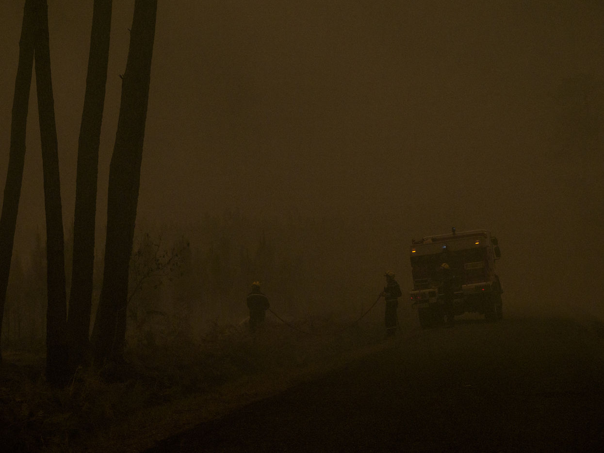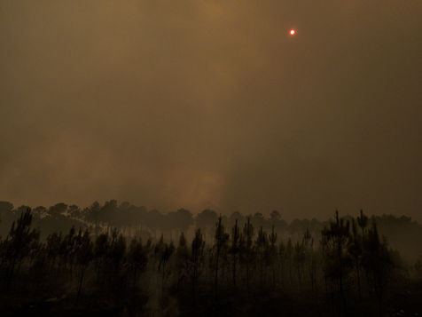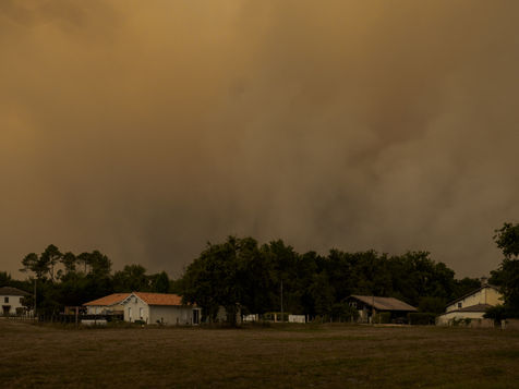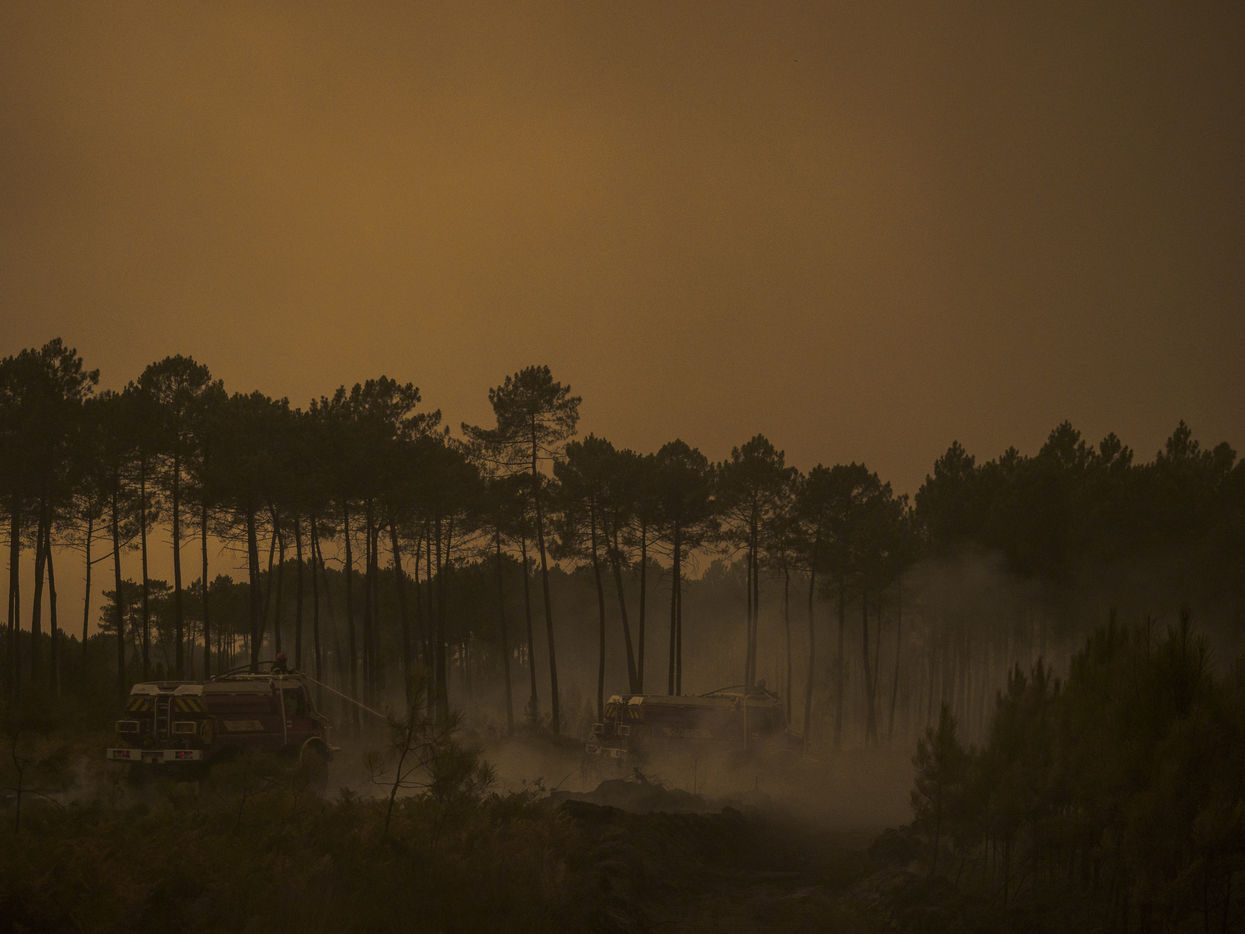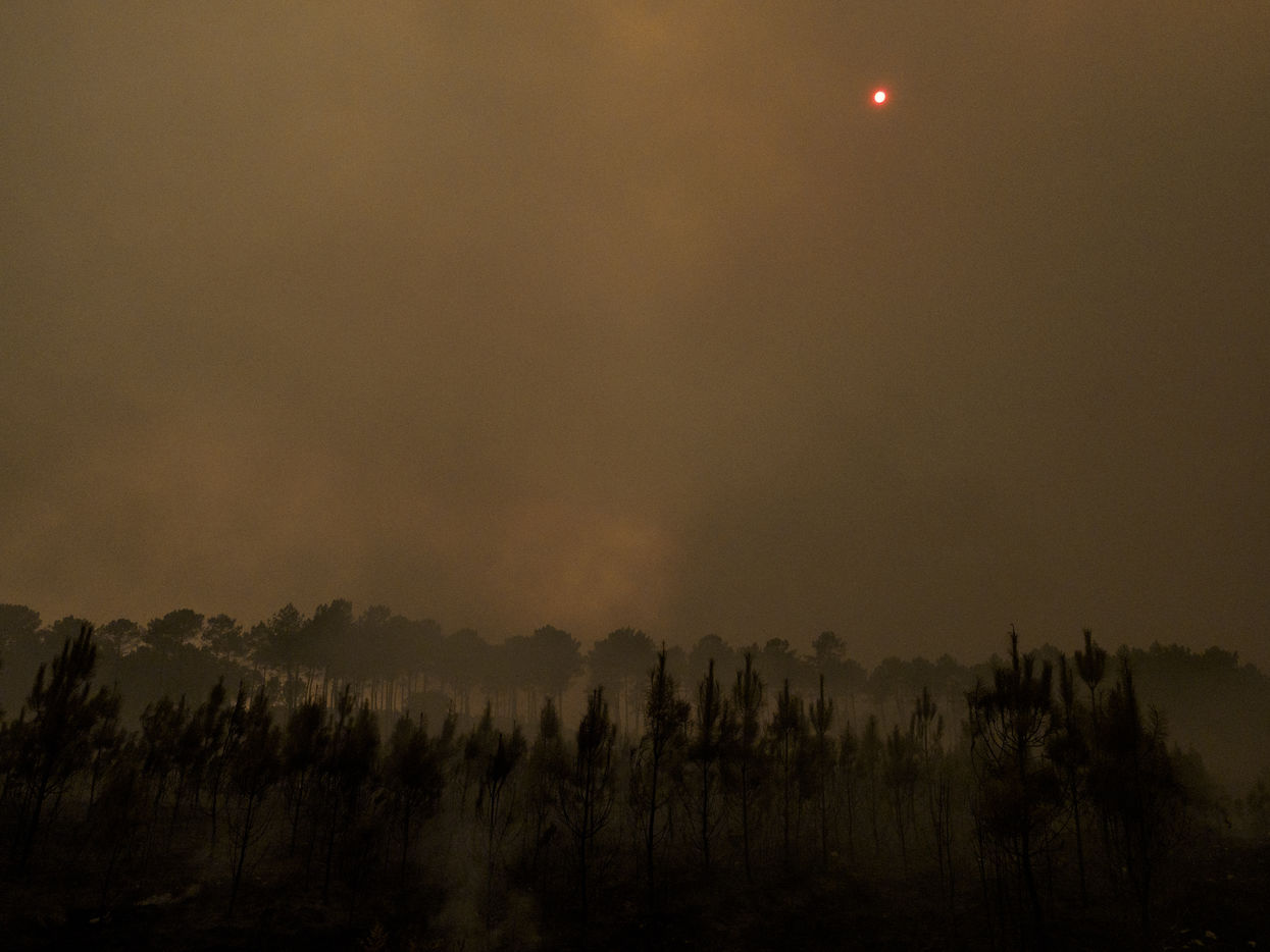 France, Hostens, Gironde, August 10, 2022. The mega fire that broke out in Gironde created its own winds and grew uncontrollably. More than 5000 hectares of pines have still burned. Not enough firefighters can stop it, many homes are threatened and 16 have already burned down.