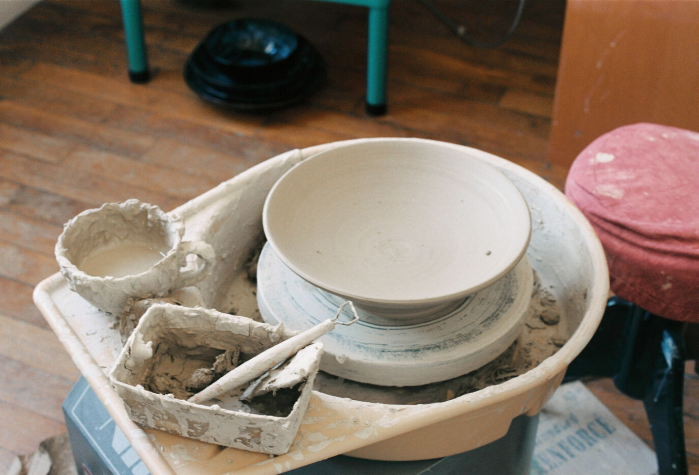 This photographic series focuses on the practice of ceramics through the learning of wheel throwing. It follows the transformation of clay from its initial shaping to the first finished pieces.