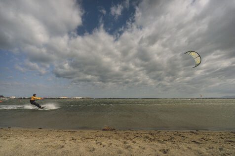 Des personnes font du kitesurf pendant la compétition Lords of Tram au Barcarès.