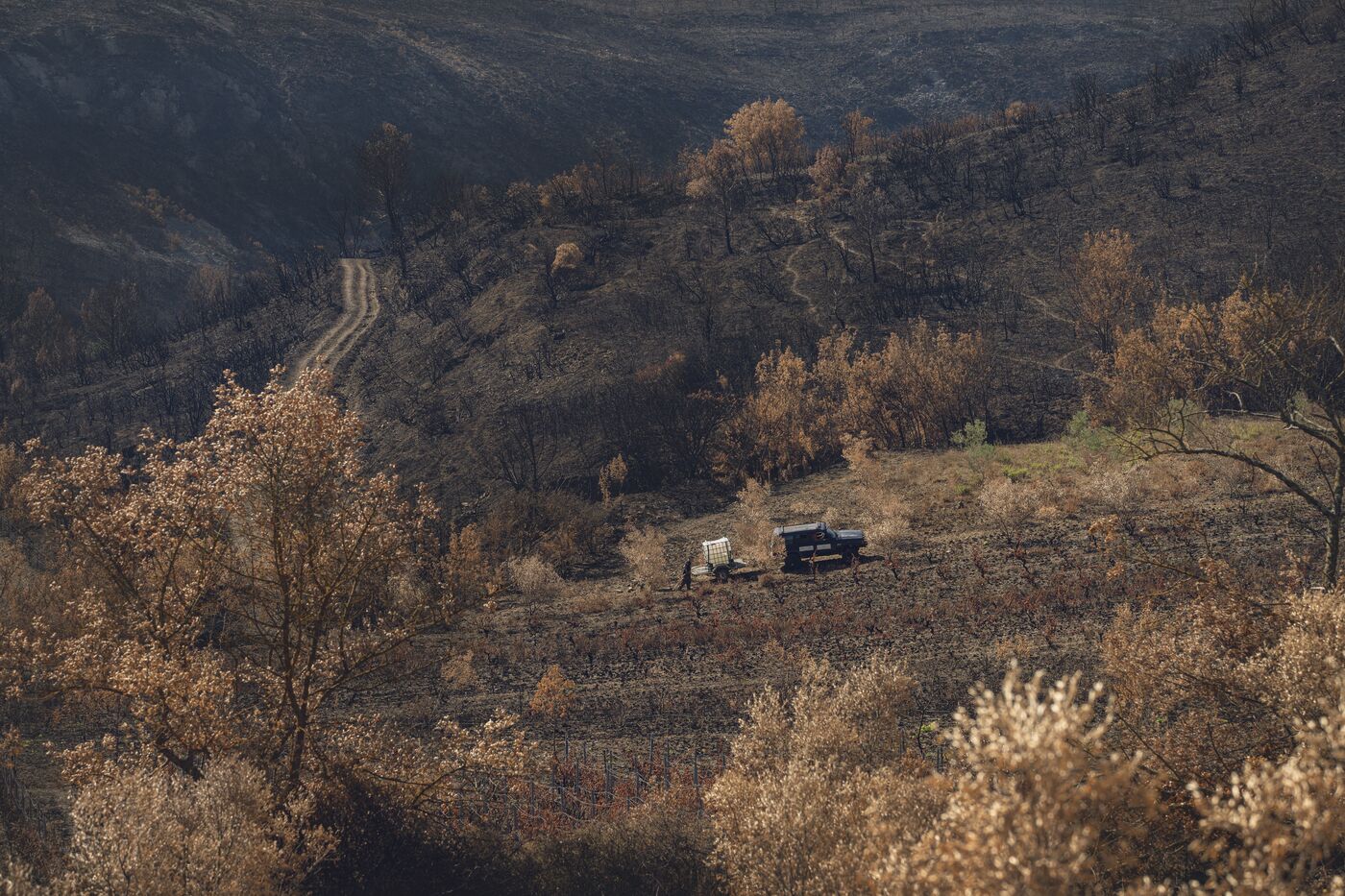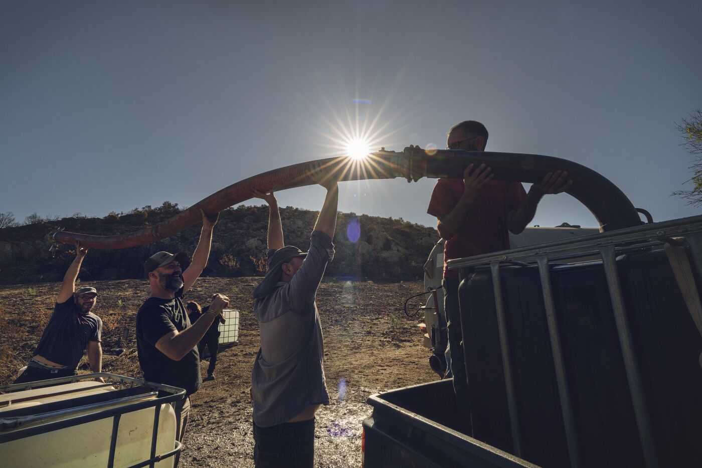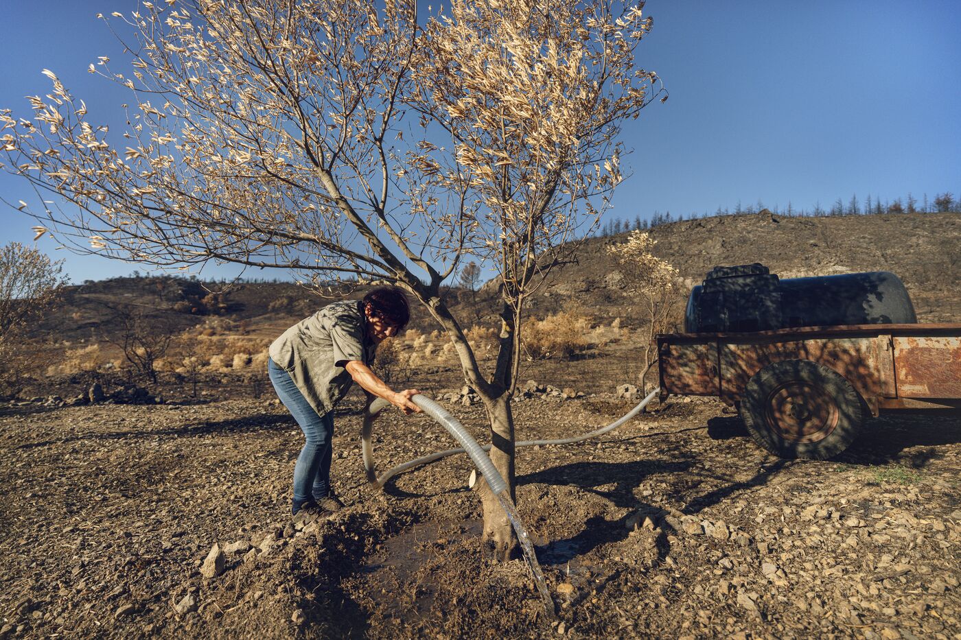 While 2,500 partygoers stirred the ashes to staccato rhythms, on the other side of the hill, volunteers came to the aid of a farmer by watering the olive trees burned during the Corbières fire, which ravaged everything in its path across 17,000 hectares. The Beauregard Peasant Third Place has taken on the mission of helping farmers affected by the most significant fire in over 50 years. It receives, plans, and organizes projects throughout the region. On this project, it was necessary to find water on land where droughts accumulate over time. Then, it had to be transported to the village of Fontjoncouse, in an attempt to save the olive trees in this devastated valley.