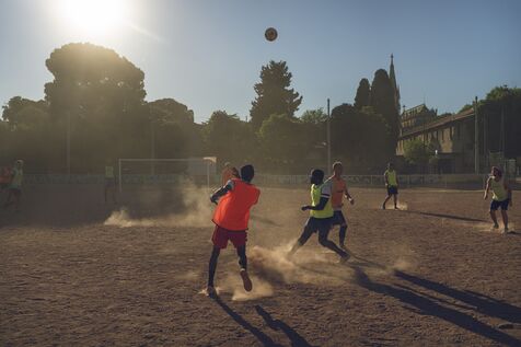 Sans-papiers, SDF, étudiants… tous jouent au ballon sur cette terre battue deux fois par semaine. Leur seul but ce n’est pas forcément d’en marquer, car ils ne sont pas comptés, mais de jouer ensemble pour s’intégrer et aussi oublier un quotidien souvent difficile. Le jeu de passe, collectif, est favorisé à celui des dribbles, individualiste.