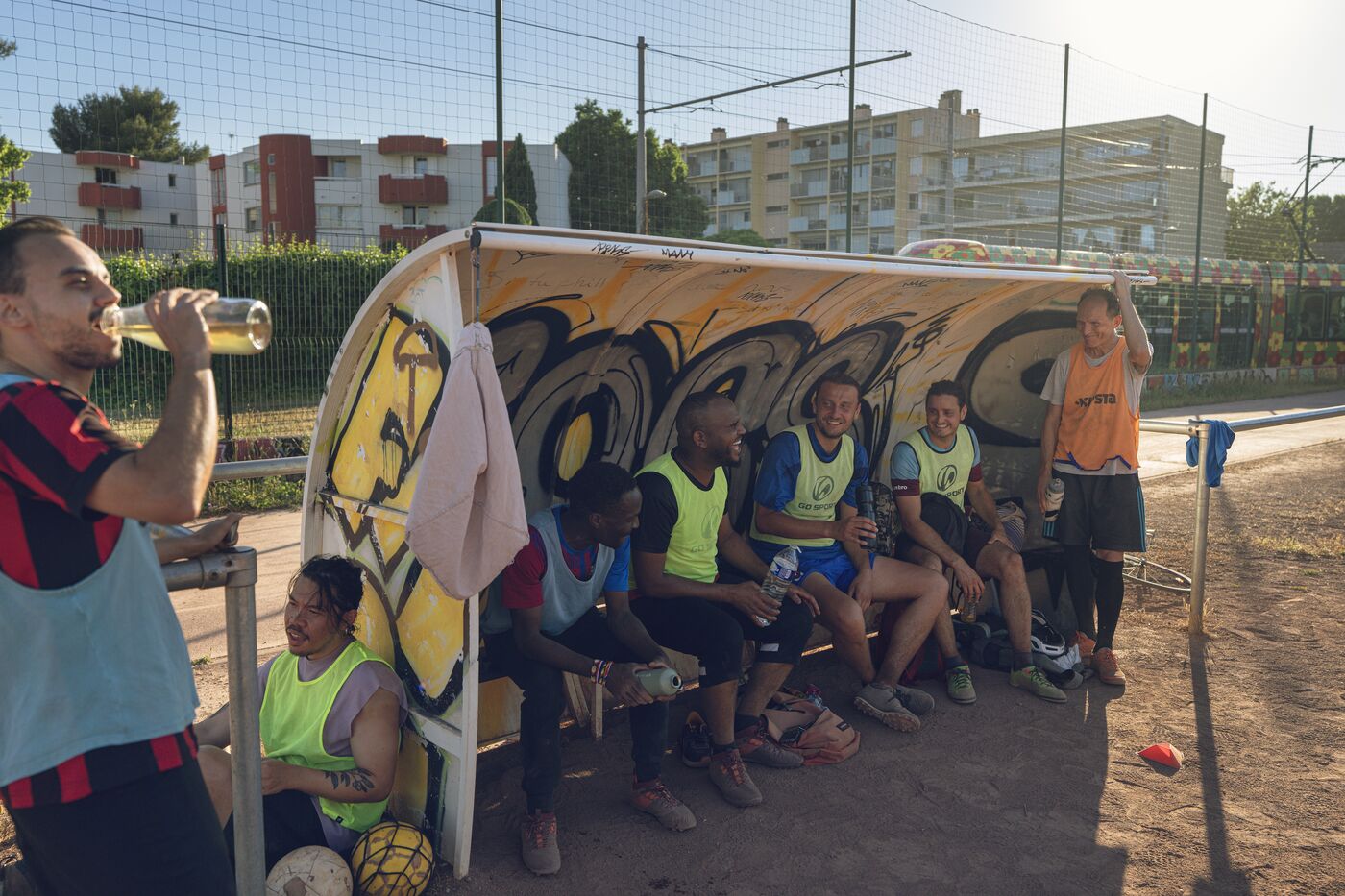 People's Football in Montpellier is a grassroots football club whose logo depicts a footballer on an anti-fascist flag. It was founded after a trip to Greece 10 years ago, inspired by local anti-fascist movements with a social focus. Undocumented immigrants, the homeless, students… all play football on this clay pitch twice a week. Their sole aim isn't necessarily to score, as they aren't counted, but to play together to integrate and also to escape their often difficult daily lives. The team's passing game is favored over individualistic dribbling.
