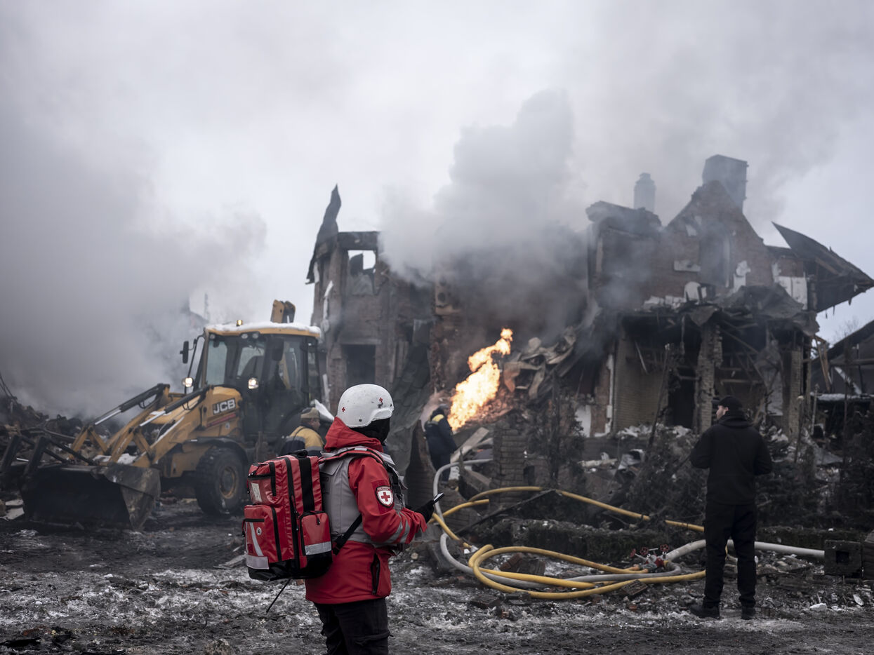 Le 22 février 2026, une frappe aérienne russe a visé un quartier résidentiel à Kyiv. L’explosion a détruit deux maisons dans la zone touchée. Un incendie s’est déclaré après l’attaque, dégageant une épaisse fumée au-dessus du quartier. Des voitures stationnées ont été brûlées et des débris ont été dispersés dans les rues voisines. Les services d’urgence sont intervenus pour maîtriser l’incendie et évaluer les dégâts. L’attaque s’inscrit dans le contexte de la guerre entre la Russie et l’Ukraine.
