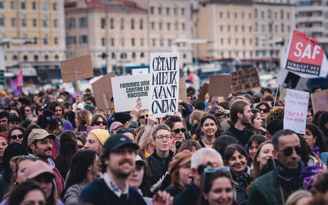 The following day thousands of people marched through the streets of Marseille during the annual feminist demonstration held on March 8. Activists organizations and citizens gathered to demand gender equality denounce violence against women and reaffirm the importance of womens rights mobilizations worldwide.
