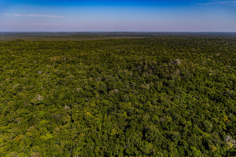 Mirador, Guatemala, Mars 2025. Il faut 30 minutes d’hélicoptère depuis Flores pour rejoindre El Mirador (Point de vue en Espagnole), niché dans l’extrême nord de la jungle guatémaltèque. Un survol qui, déjà, en dit long : on aperçoit les eaux qui montent autour de la ville de Flores, inondant certaines maisons du bord, puis plus loin, les stigmates laissés par les éleveurs et agriculteurs, les arbres abattus, les grands trous d’eau creusés à la lisière de la forêt. Le gouvernement n'a pas les moyens financiers pour protéger toute la biosphère maya. La jungle recule.