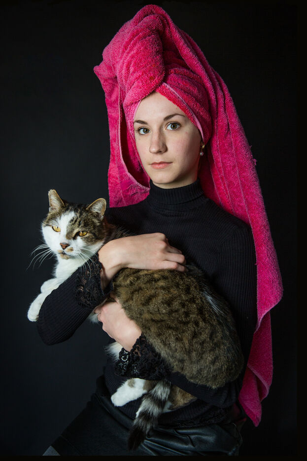 Un chat dans ses bras, libre encore dans sa domesticité.