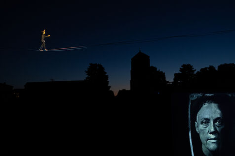 Dès les premières minutes, le public a été transporté par une performance aérienne de la compagnie Gratte Ciel. Deux funambules ont dansé dans les airs, suspendus devant un immense écran où défilaient des images. Une mise en scène spectaculaire, ponctuée de jeux d’ombres sur les photos projetées, a captivé les quelque 2 500 spectateurs, venus nombreux jusqu’aux pieds de la scène pour assister à ce moment suspendu et à la venue exceptionnelle de Nan Goldin, lauréate du prix Women in Motion 2025, qui distingue les femmes photographes.