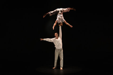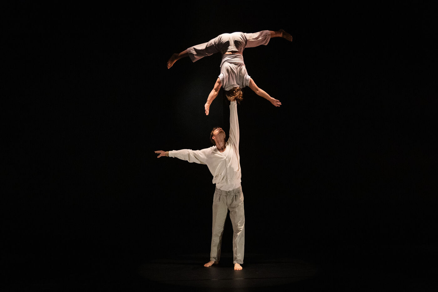 Combining hand-to-hand acrobatics, icarian games, and dance, the two artists challenge the boundaries of gender and power. This sensual and raw face-to-face, at once complicit and confrontational, exposes the mechanisms of the roles we play — and those we choose.